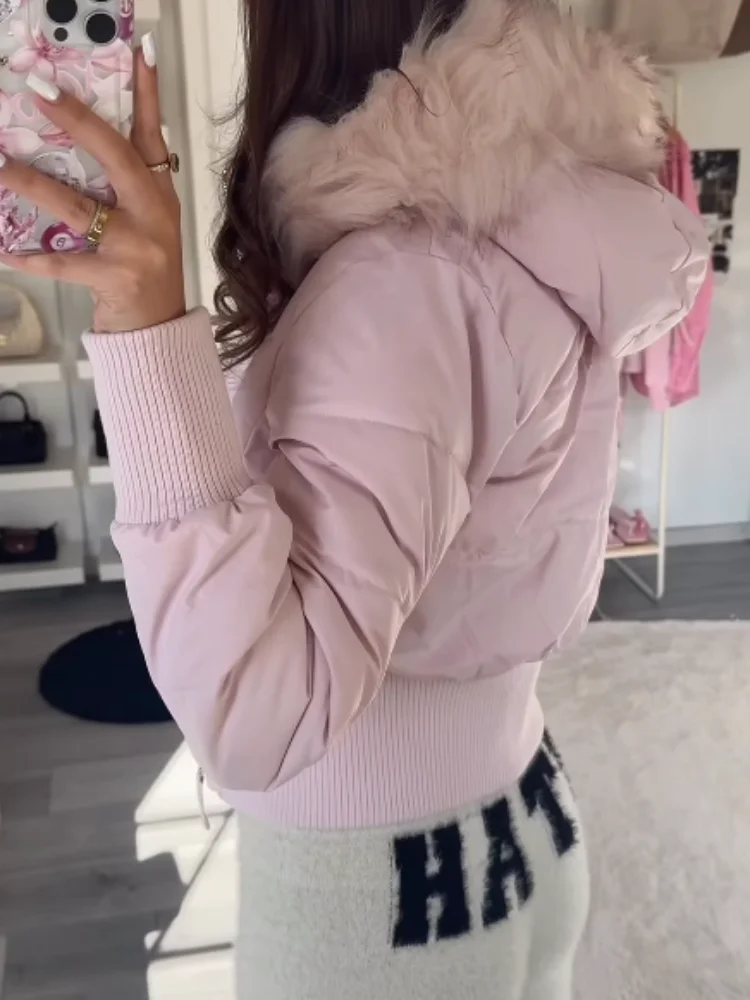 Doudoune à capuche femmes coton rembourré manteaux fermeture éclair manches longues vestes femme automne hiver épaissir streetwear 2025