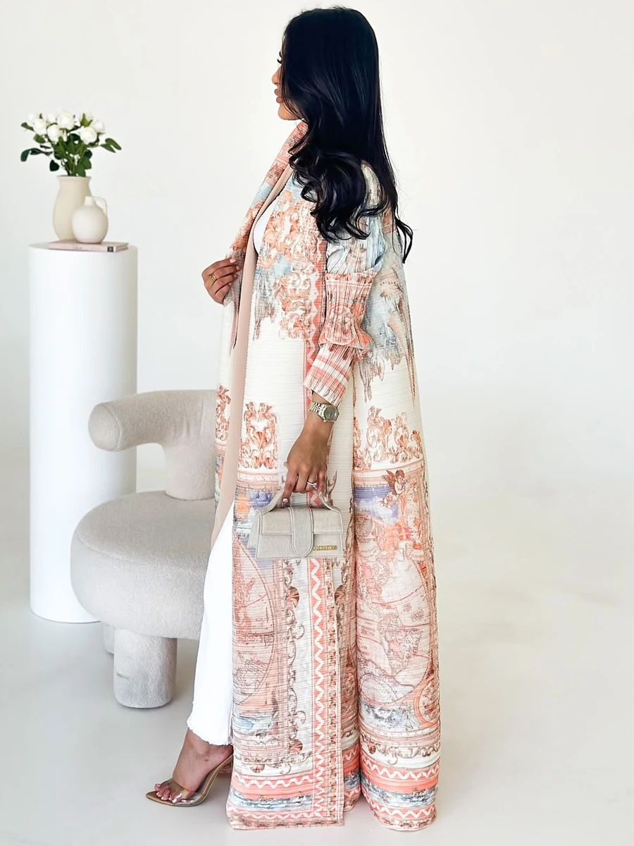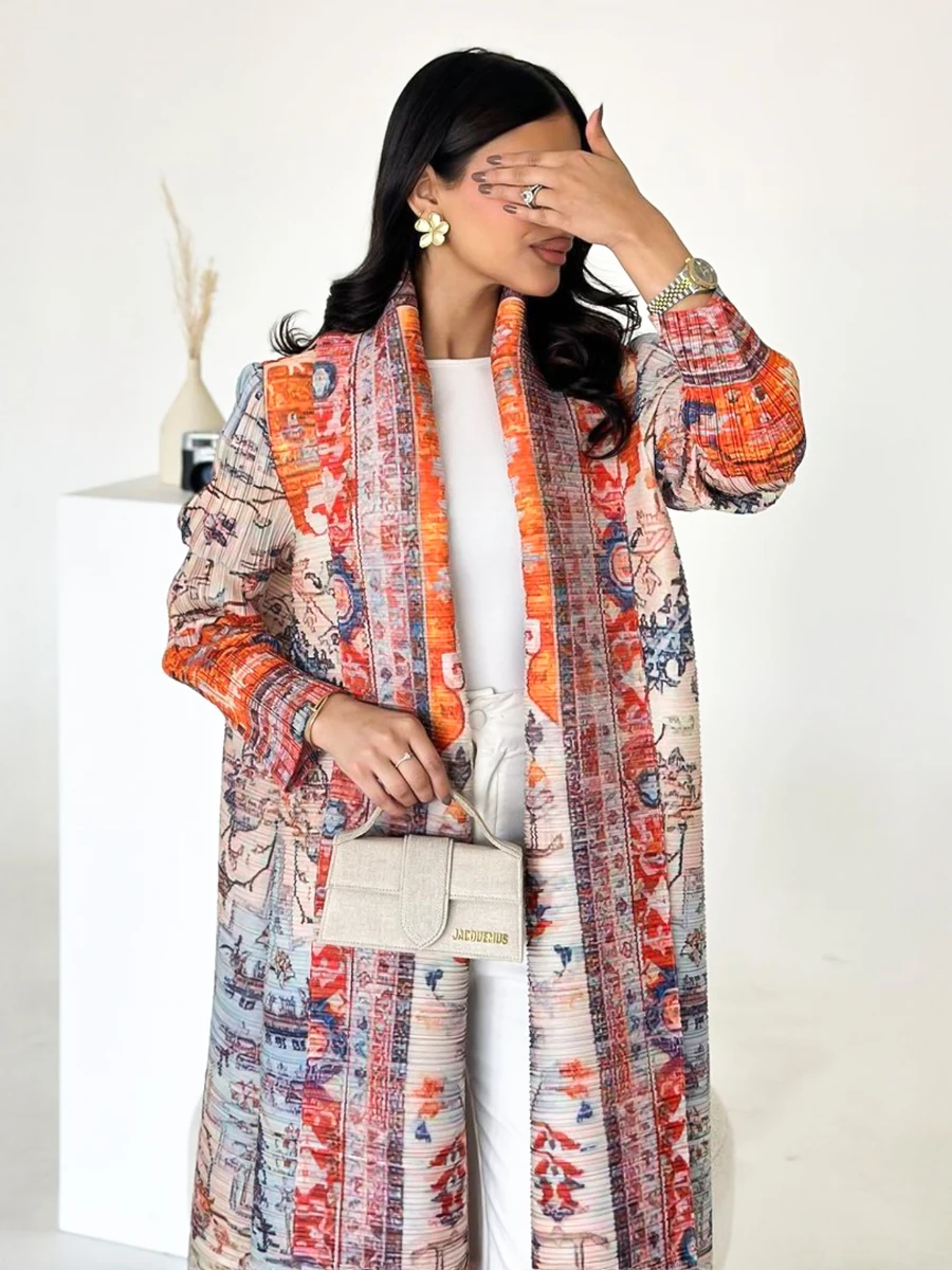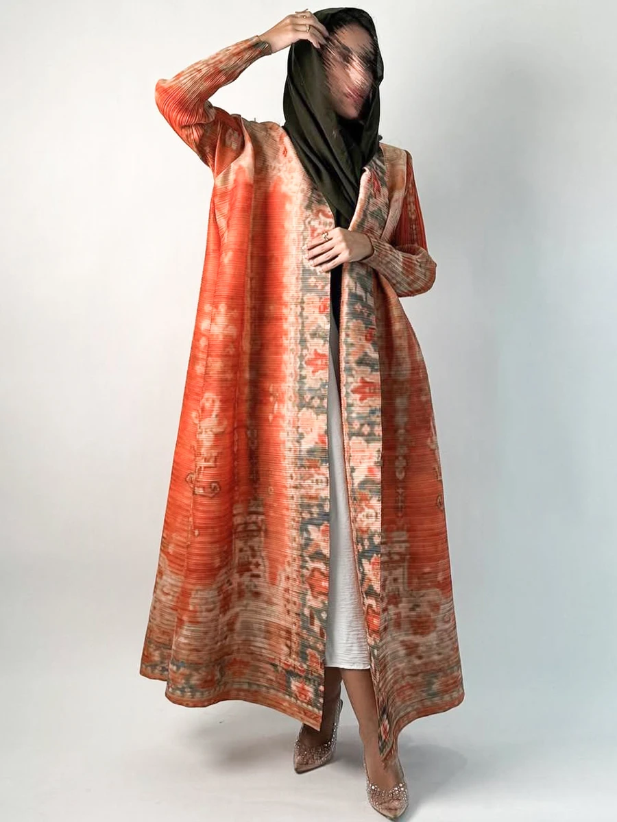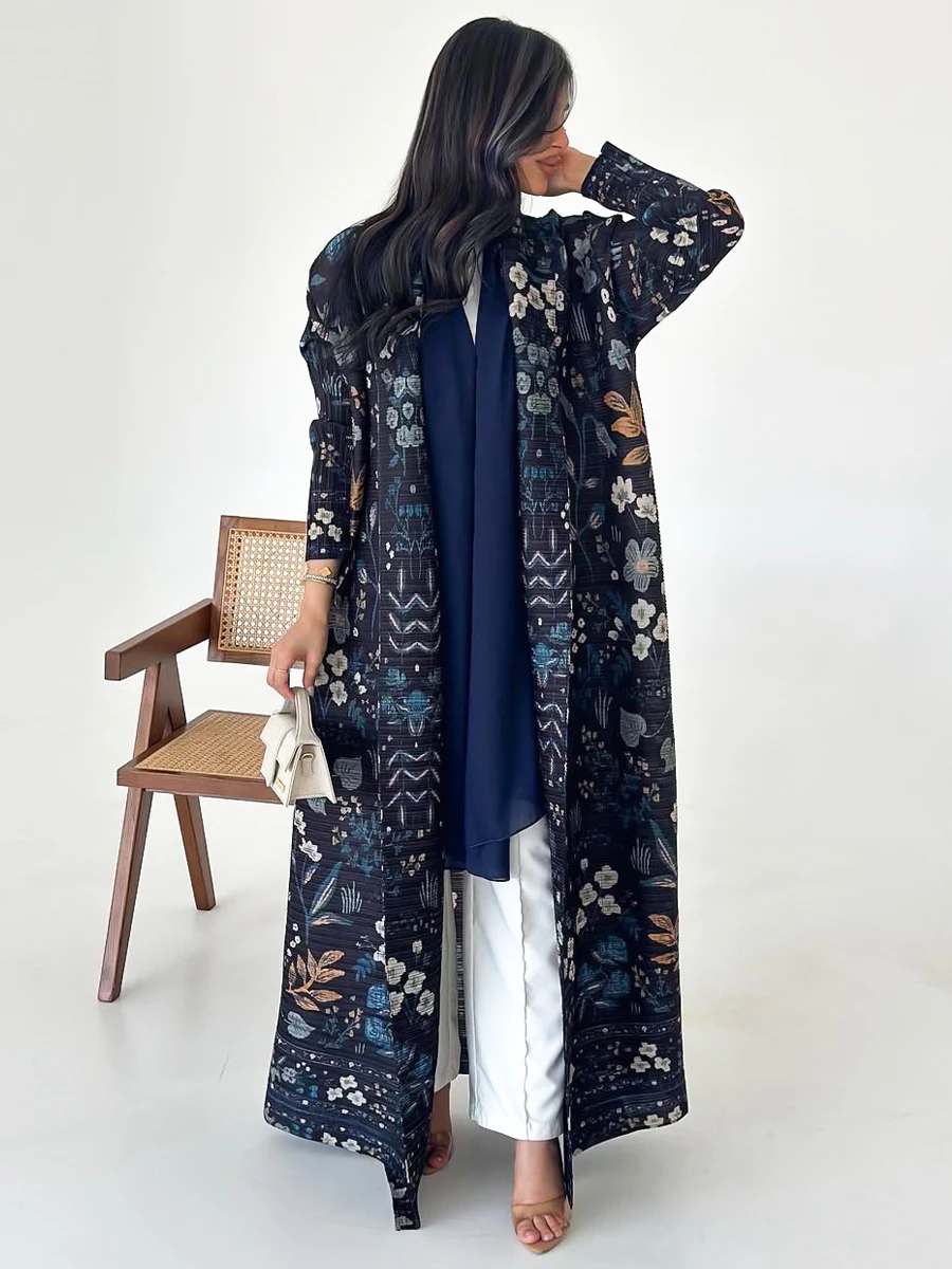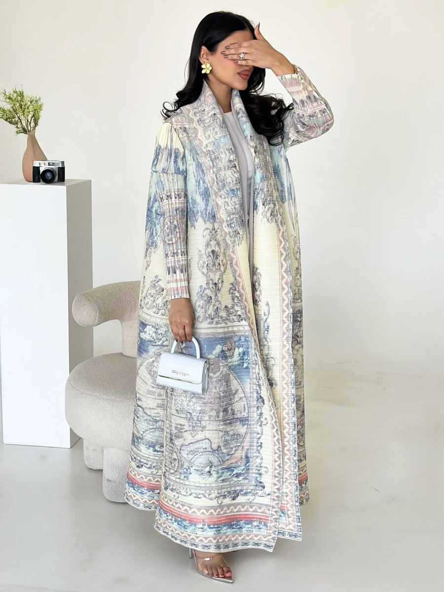 Dubaï Abaya luxe pour les femmes Miyake plissé imprimé Long manteau élégant formel soirée robes de bal femme Cardigan ouvert Abaya vêtements |
