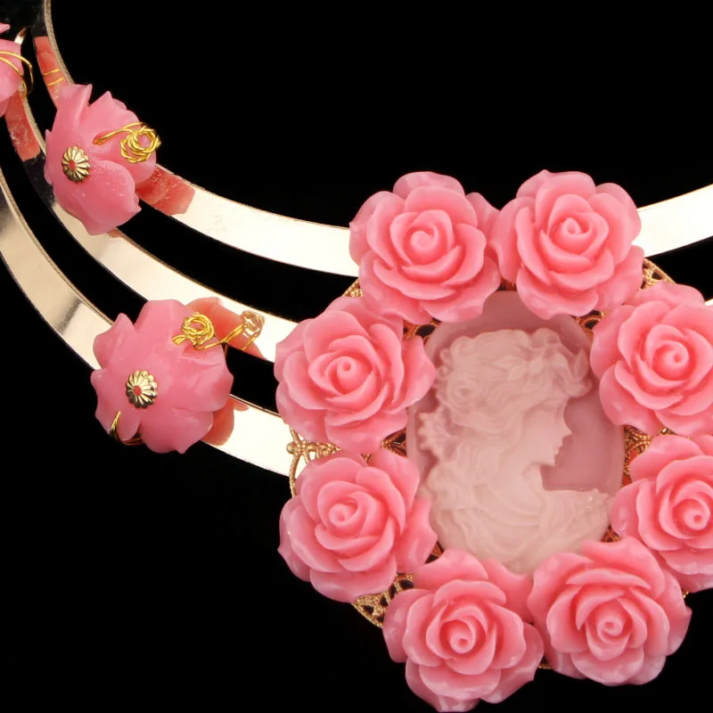 Dudo Ensemble de bijoux pour femme africaine de Dubaï avec fleurs de corail rose |