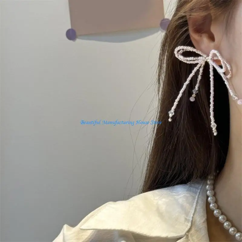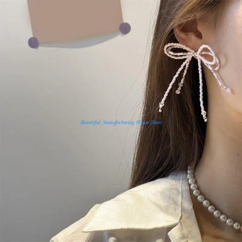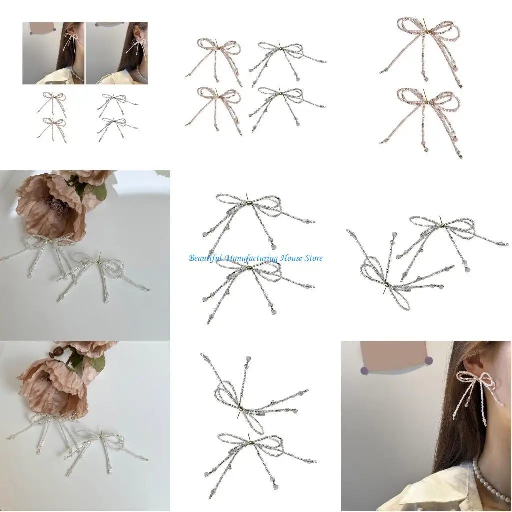 E56A boucles d'oreilles à nœud papillon à mode pour femmes filles, clous à nœud perlé, vêtements confortables à |