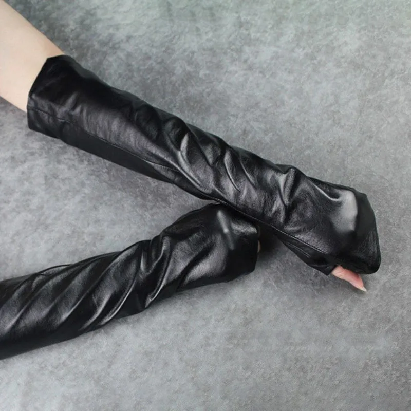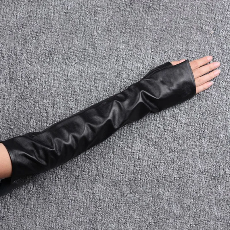 EAM-Gants longs en cuir PU pour femmes, gants élégants noirs, nouvelle personnalité, mode marée, tout match, printemps, automne, 1DH1981, 2025