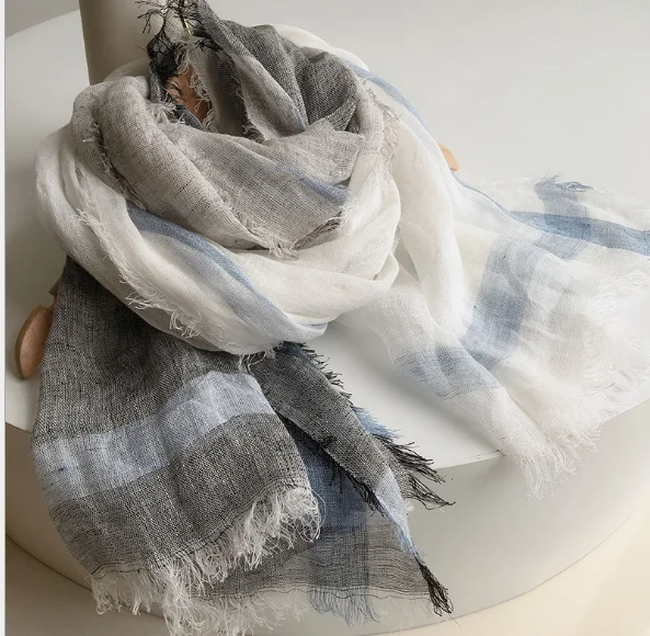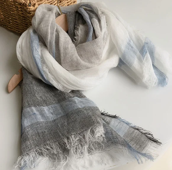 Écharpe à pampilles en lin rayé, châles chauds et doux, marque de mode, haute qualité, printemps, automne, 100% |