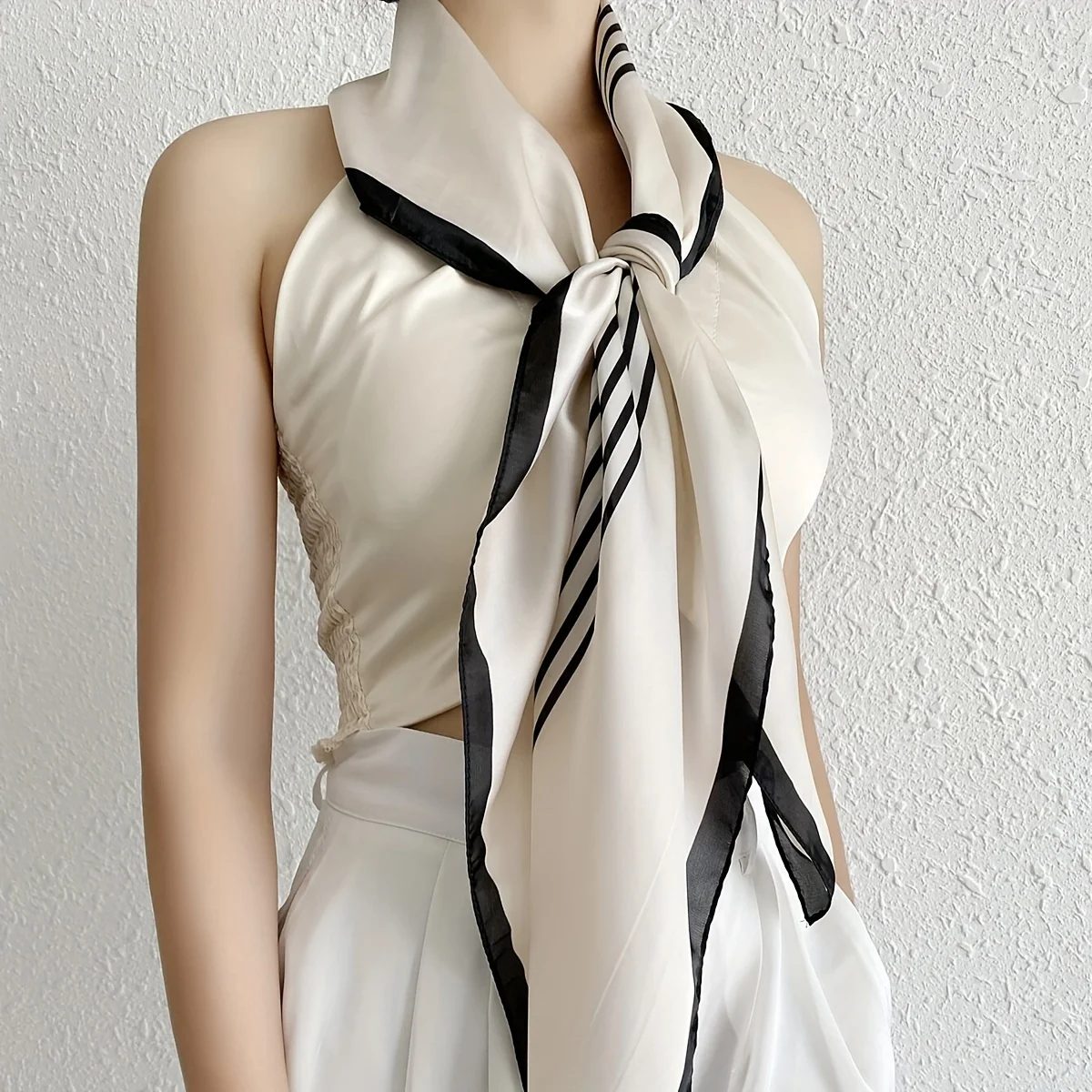 Écharpe carrée à rayures noires et blanches pour femme, châle fin simulé élégant, crème solaire décontractée, tête ronde coupe-vent, 35.43 po |