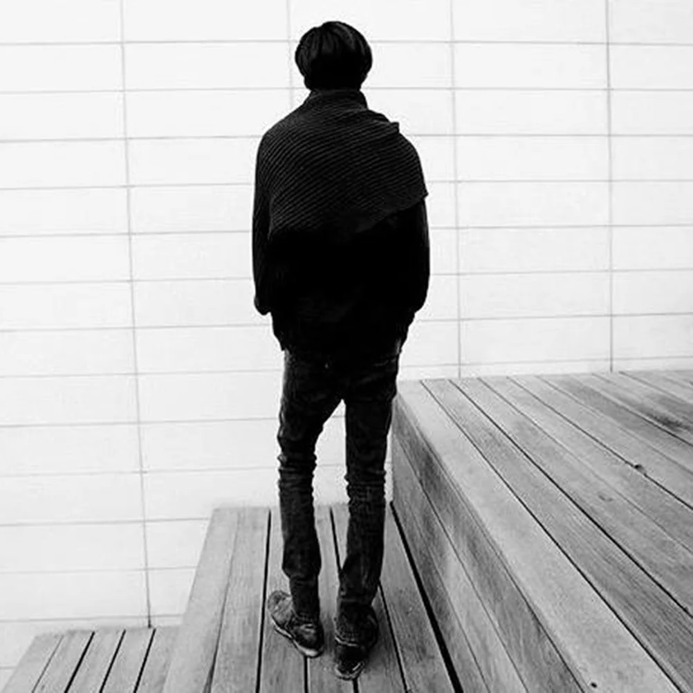 Écharpe châle en tricot avec manches, Cape d'hiver coréenne unisexe, enveloppe tricotée noire, accessoire d'épaule chaud pour vêtements pour femmes |