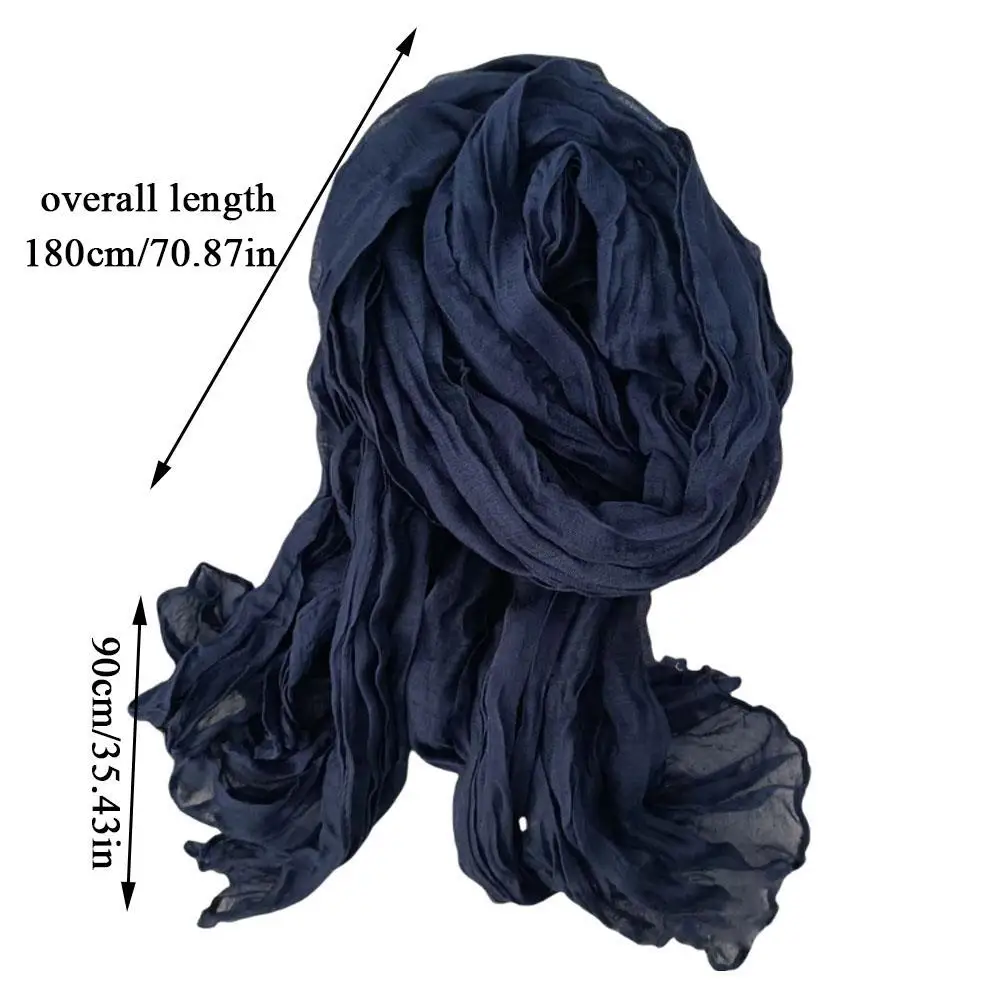 Écharpe de couleur unie rétro automne hiver nouveau plissé rétro mince Long cou plus chaud hommes et femmes chaud coton chanvre foulards