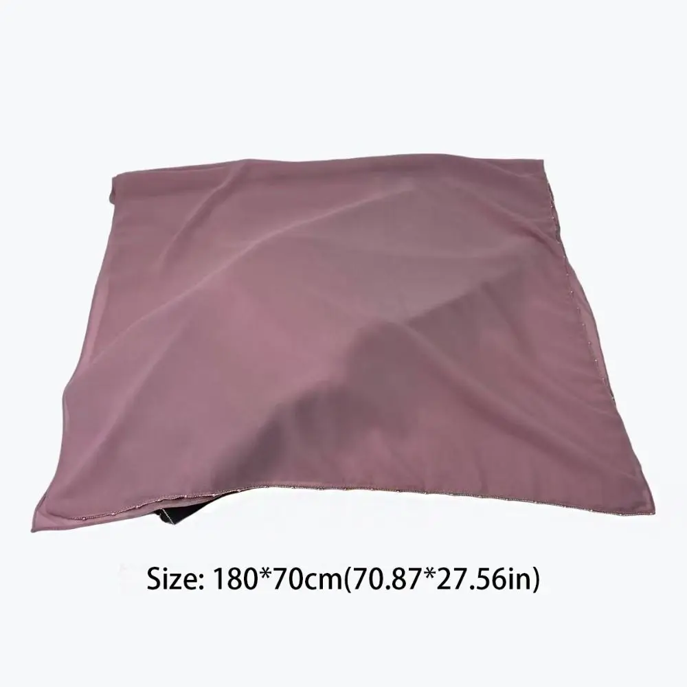 Écharpe de luxe de Style ethnique de couleur unie, longue Bandana, chaîne de perles, écharpe Hijab fine pour femme |