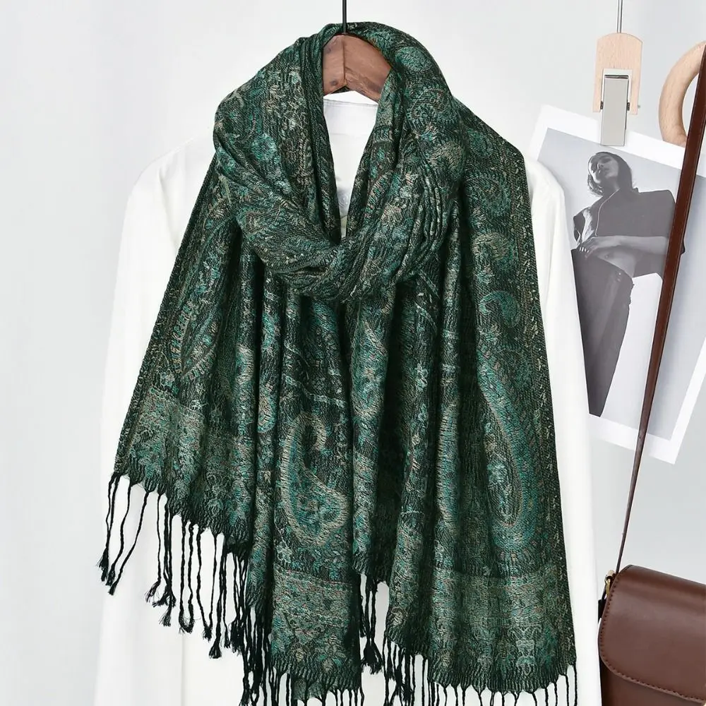 Écharpe de Style ethnique imprimée de luxe, écharpe Hijab à pampilles Jacquard, Turban islamique fin et Long pour femmes