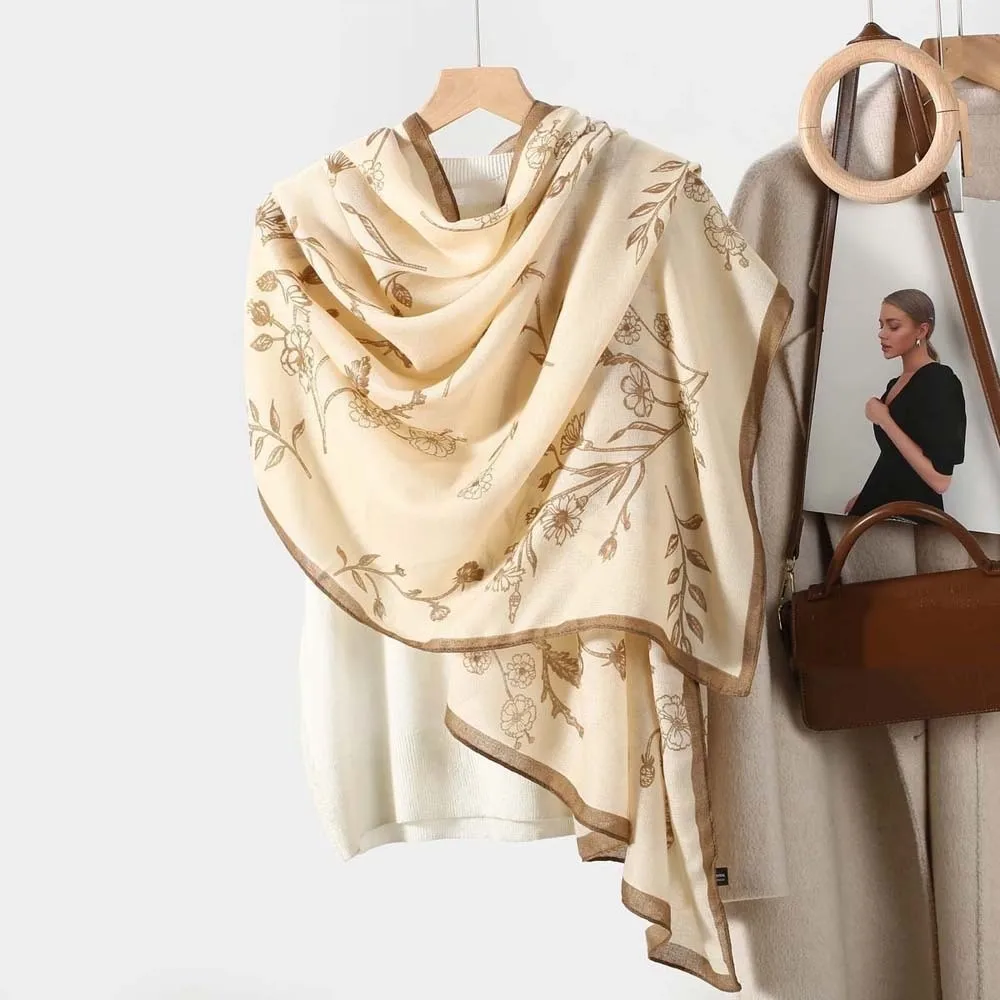 "Cette écharpe est vraiment superbe ! Elle est extrêmement douce et légère, parfaite pour les journées ensoleillées. J'adore le motif fleuri et la couleur est magnifique. Le seul petit bémol est qu'elle a tendance à se froisser un peu facilement, mais rien de grave. Dans l'ensemble, c'est un foulard de très haute qualité qui me protège efficacement du soleil tout en étant très agréable à porter."