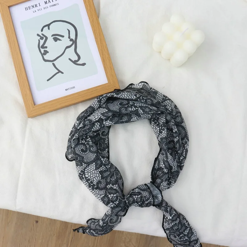 Écharpe foncée Triangle châle femmes 2025 printemps et été nouvelle tendance rétro française tout-Match atmosphère sens cou écharpe bandeau |