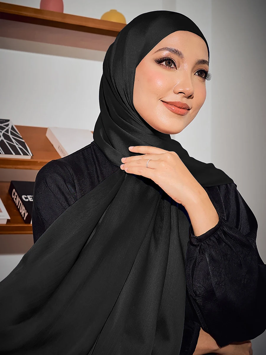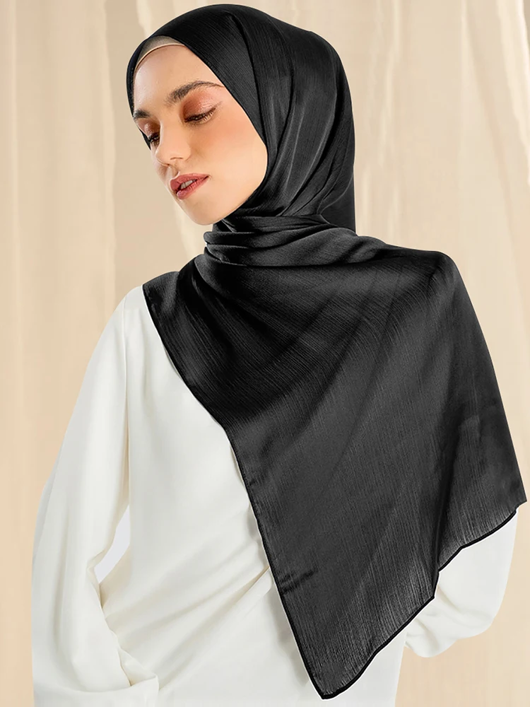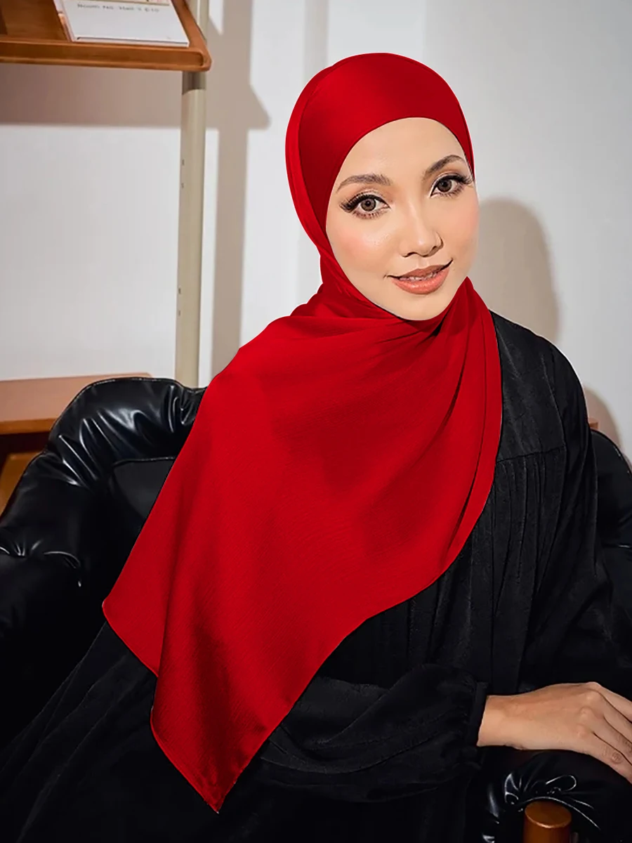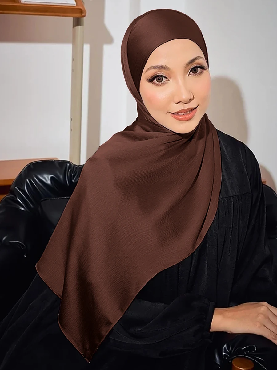 Écharpe Hijab en Satin à Rayures Texture Unie pour Femme, Châles, Turban Instantané, 170x70cm |