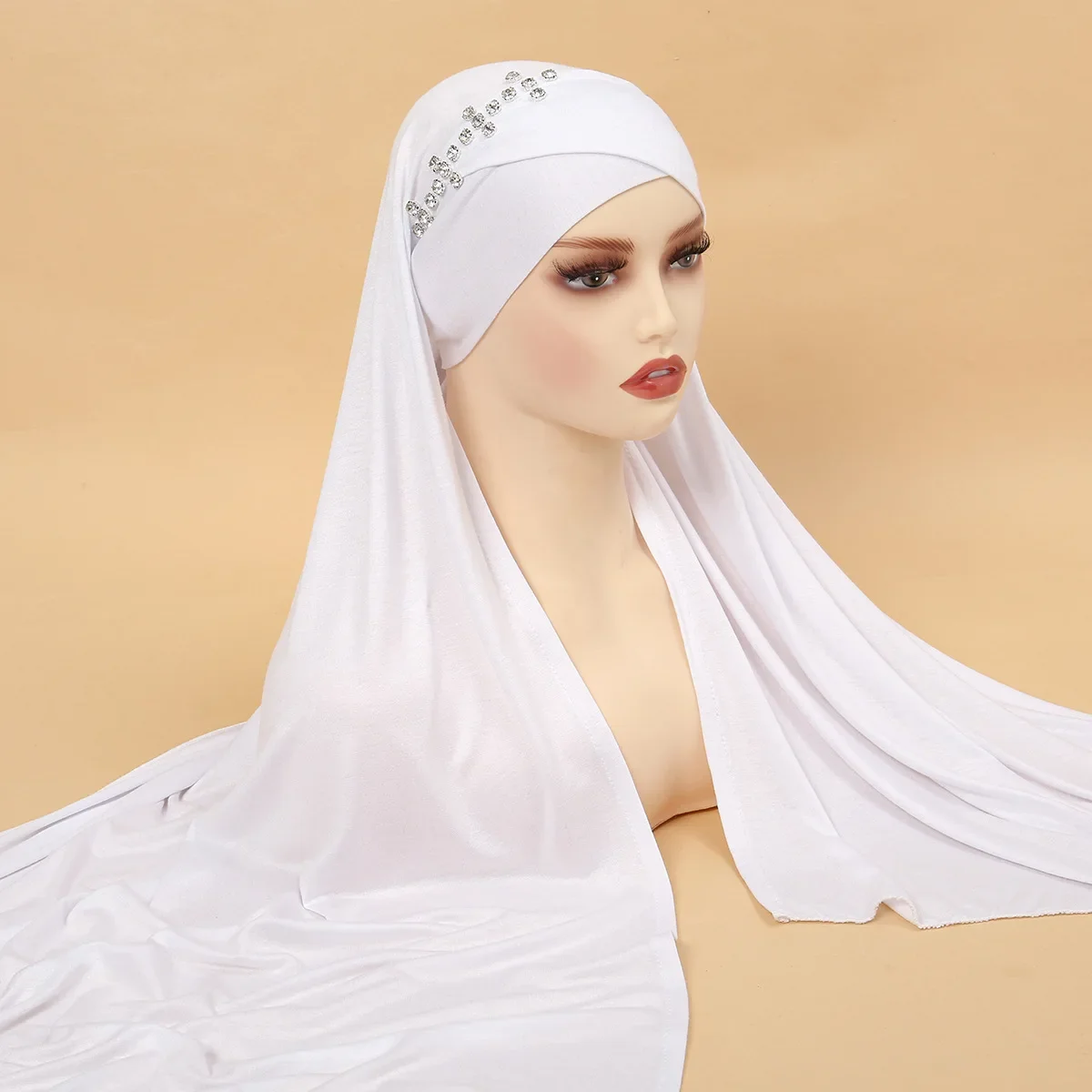 Écharpe Hijabs Instantanée avec Jersey Croisé pour Femme Musulmane, Bonnet, Sous-Écharpe, Bonnets Intérieurs en Diamant, Enveloppe de Sauna, Amira, 1 Pièce |