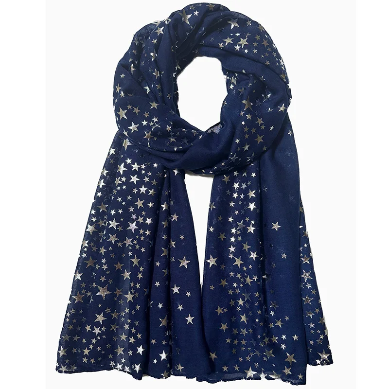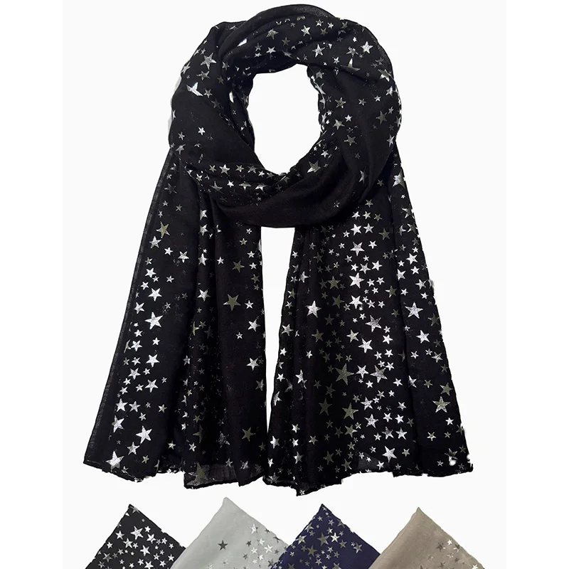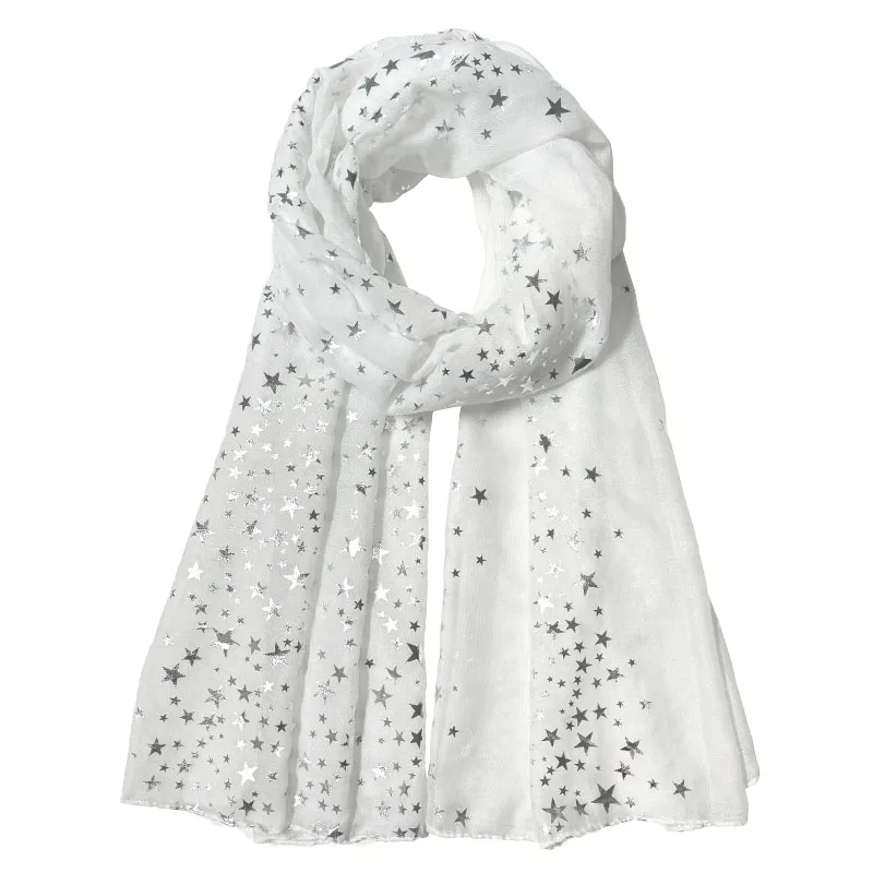Écharpe imprimée étoiles pour femmes, Hijab brillant argenté, châle élégant, pour mariage, mariée, hiver, chaud, luxe |