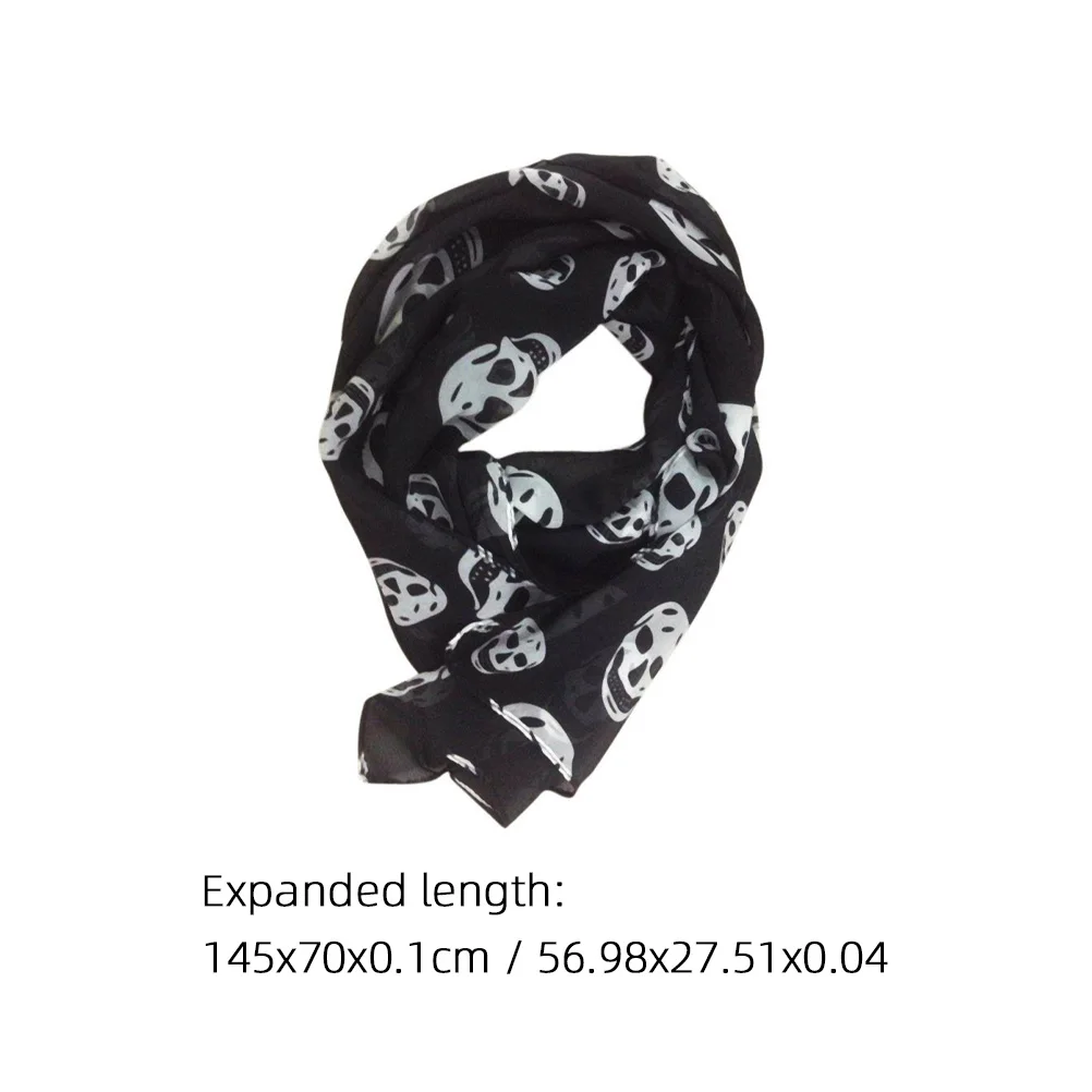 Écharpe longue en forme de crâne pour femmes, châle en mousseline de soie, enveloppe les cheveux, foulards pour le cou et les crânes
