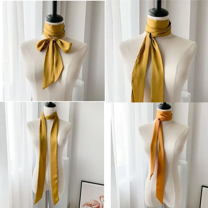 Écharpe longue et maigre pour femme, bandeau de sauna en satin, joli mouchoir de la présidence, monochromatique, 190x5cm, écharpes de sac à la mode pour dames, 2023 |