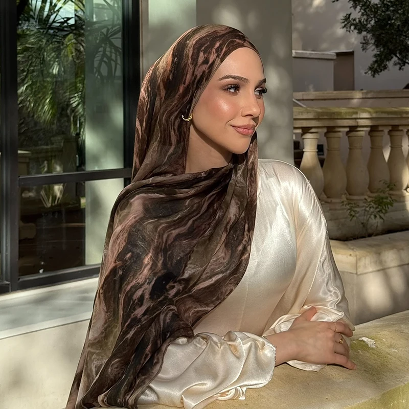 Écharpe musulmane en marbre Hijab imprimé aquarelle, Protection solaire douce et respirante, légère, enveloppement de plage d’été pour femmes