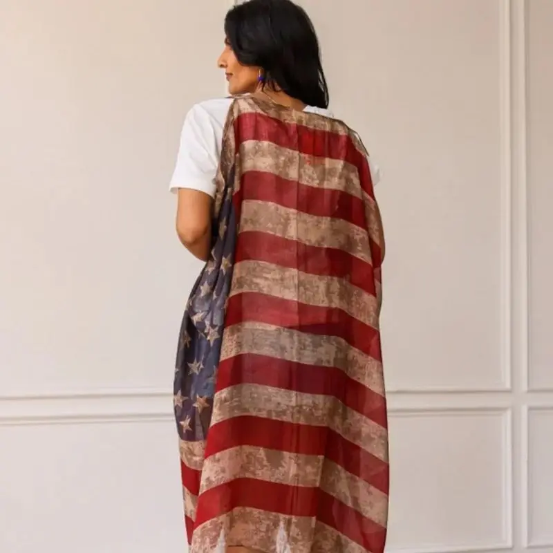Écharpe Oblong à Motif Étoiles Fosotiques, Châle Américain Populaire, Écharpe de Sauna, Silencieux Tyys, Doux, Rond, Géométrique, Rayure