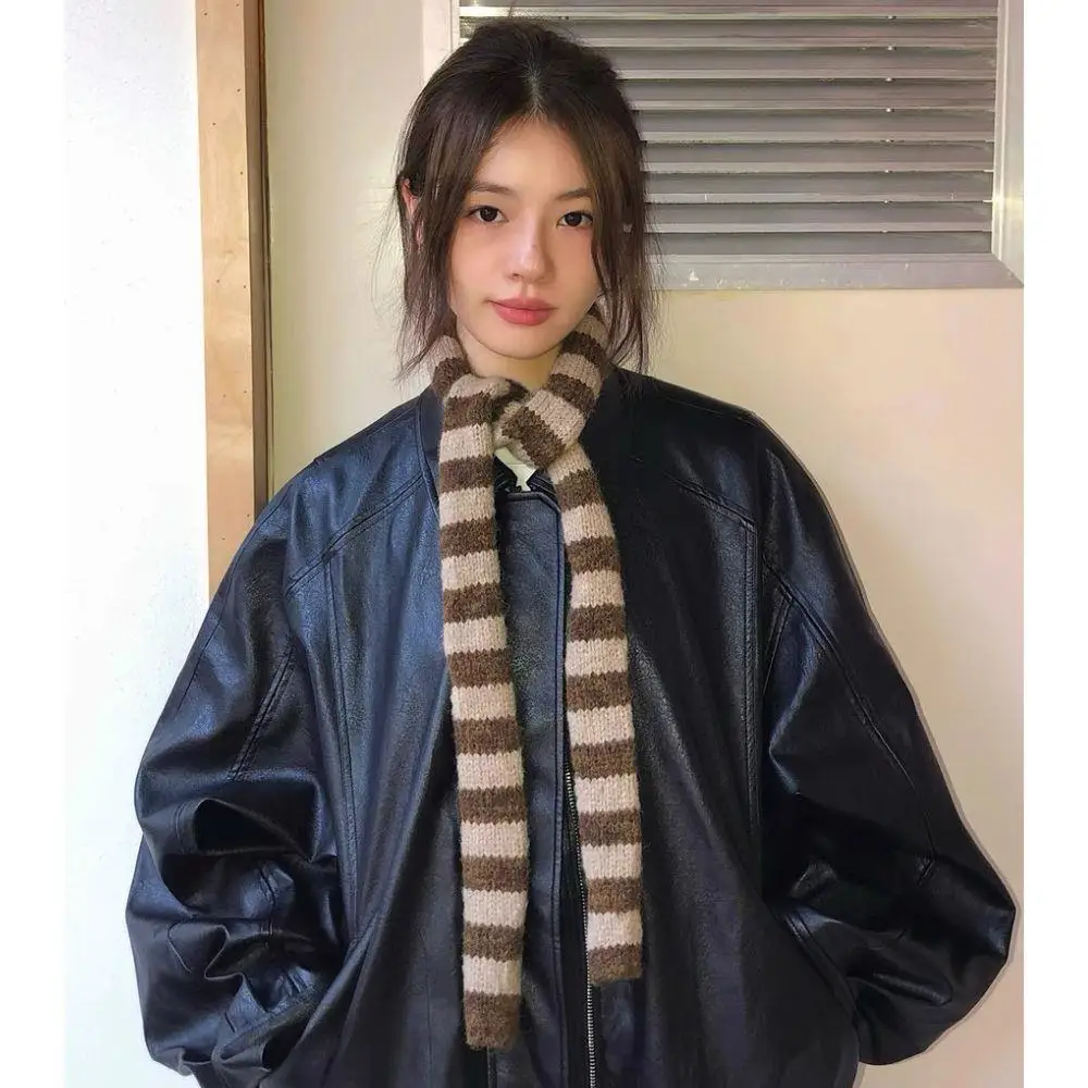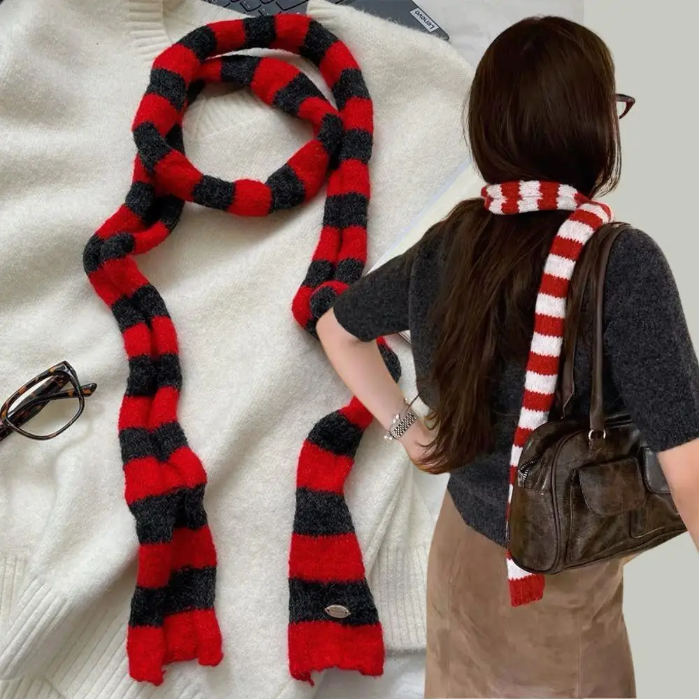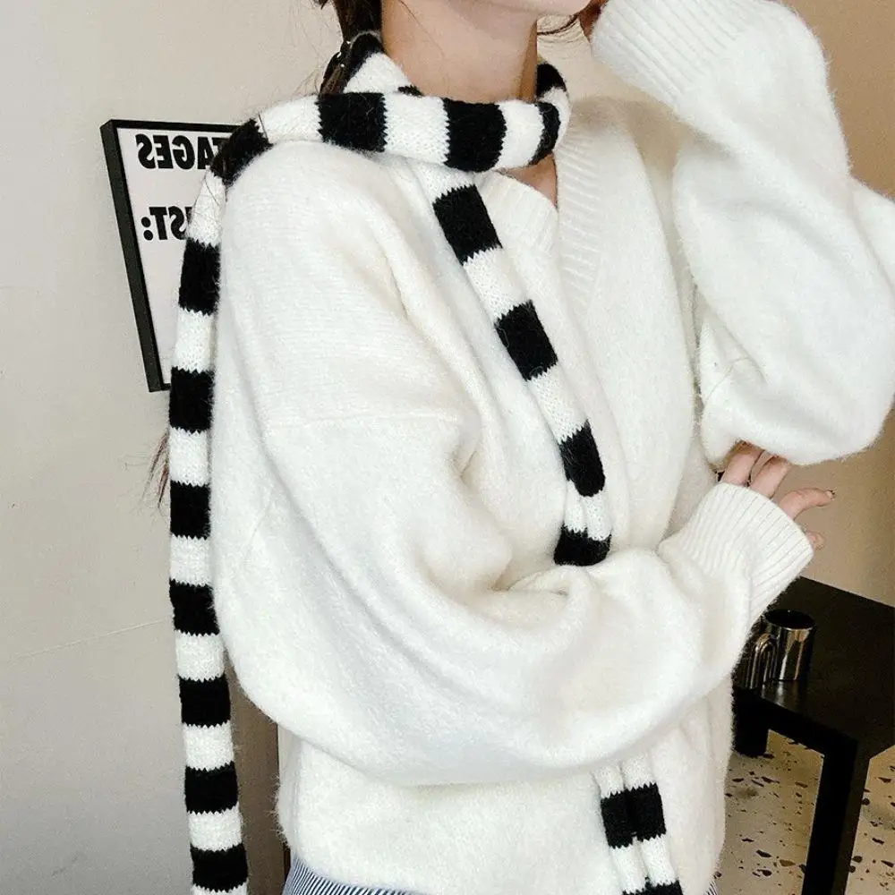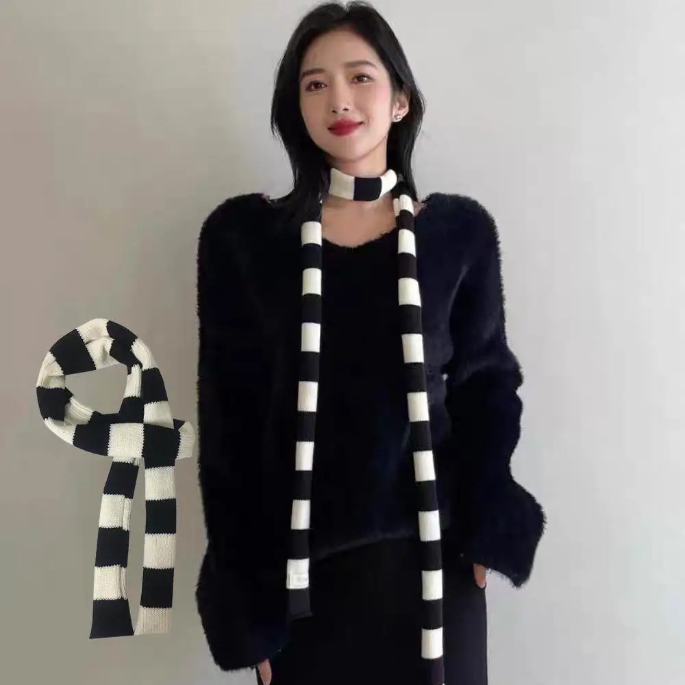 Écharpe rayée longue écharpe à cravate femmes foulards en coton écharpe fine et étroite Harajuku rayé tricoté foulards fille cou plus chaud nouveau |