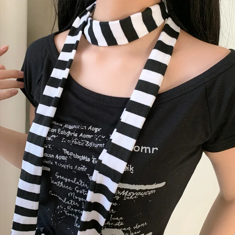 Écharpe rayée pour femmes, polyvalente et à la mode, Style Punk Harajuku Y2K gothique fille, sous-culture millénaire, foulard décoratif