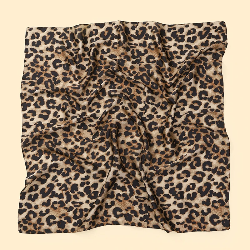 Écharpe rétro imprimée léopard de style coréen pour la décoration de vêtements pour femmes, écharpe carrée polyvalente et fine en imitation soie |