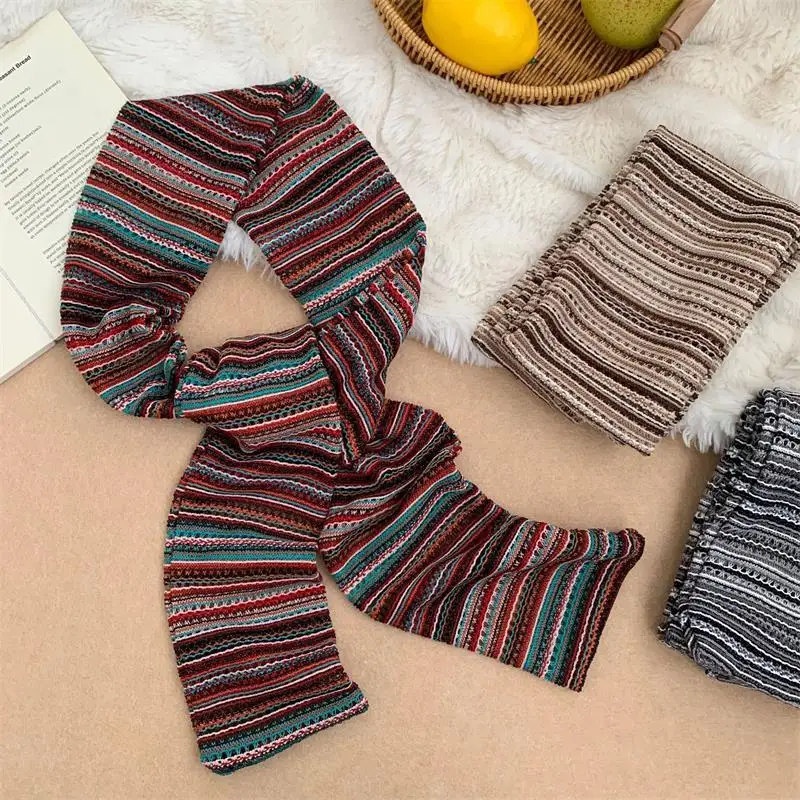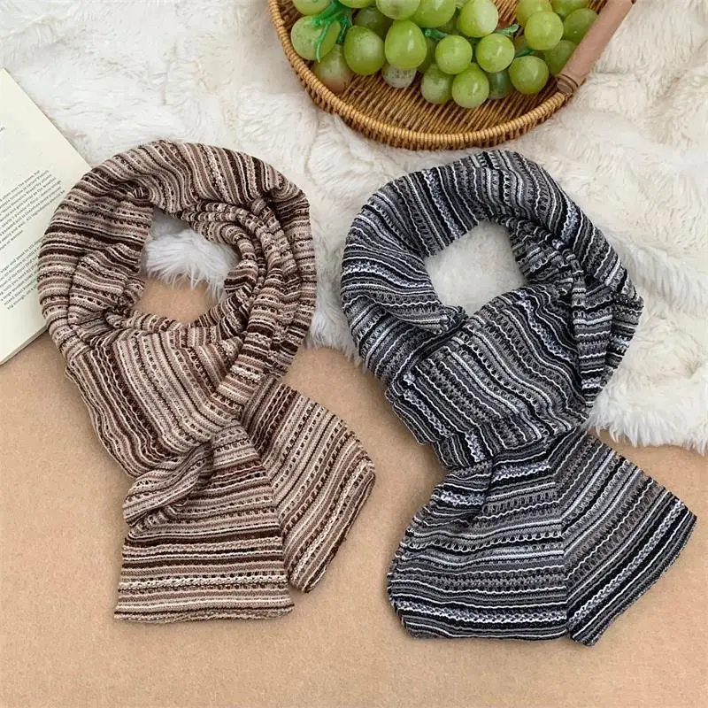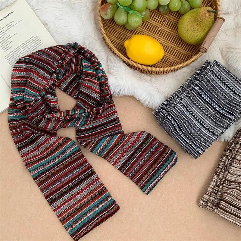 - Écharpe tricotée rétro à rayures colorées pour un style unique et tendance