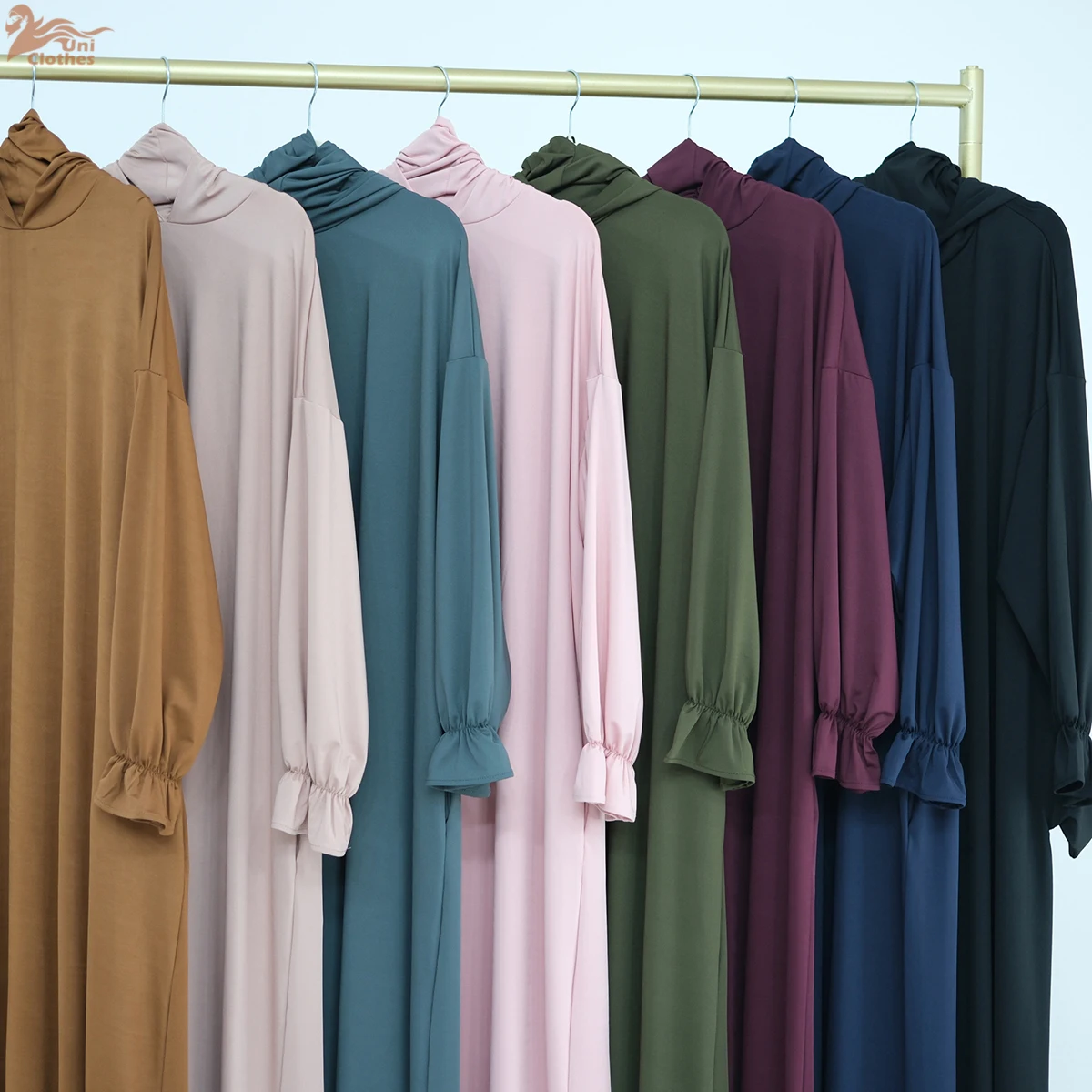 Eid Ramadan prière Abaya femmes robe musulmane dernière une pièce prière Hijab plaine Jersey à capuche Abaya vêtements islamiques |