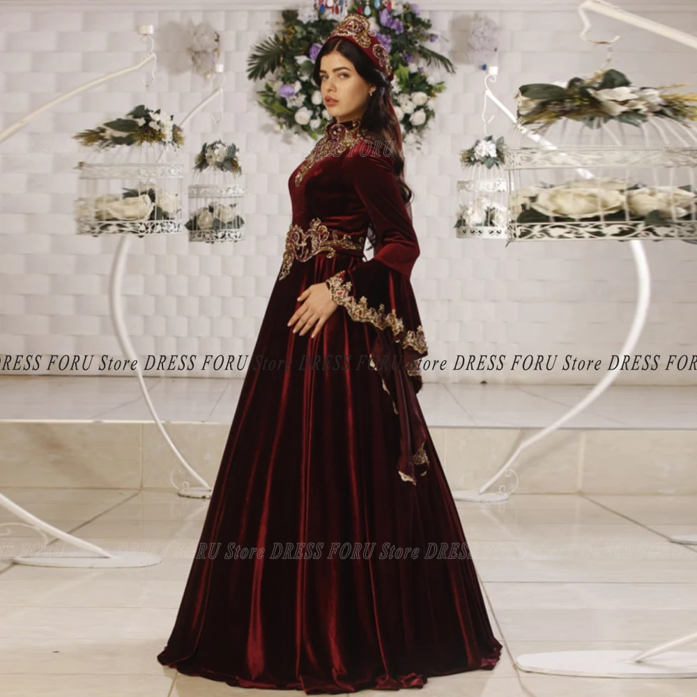 Élégant bordeaux marocain caftan Robe de soirée une ligne perle haute Callor musulman Robe formelle velours dubaï dentelle célébrité Robe de soirée |