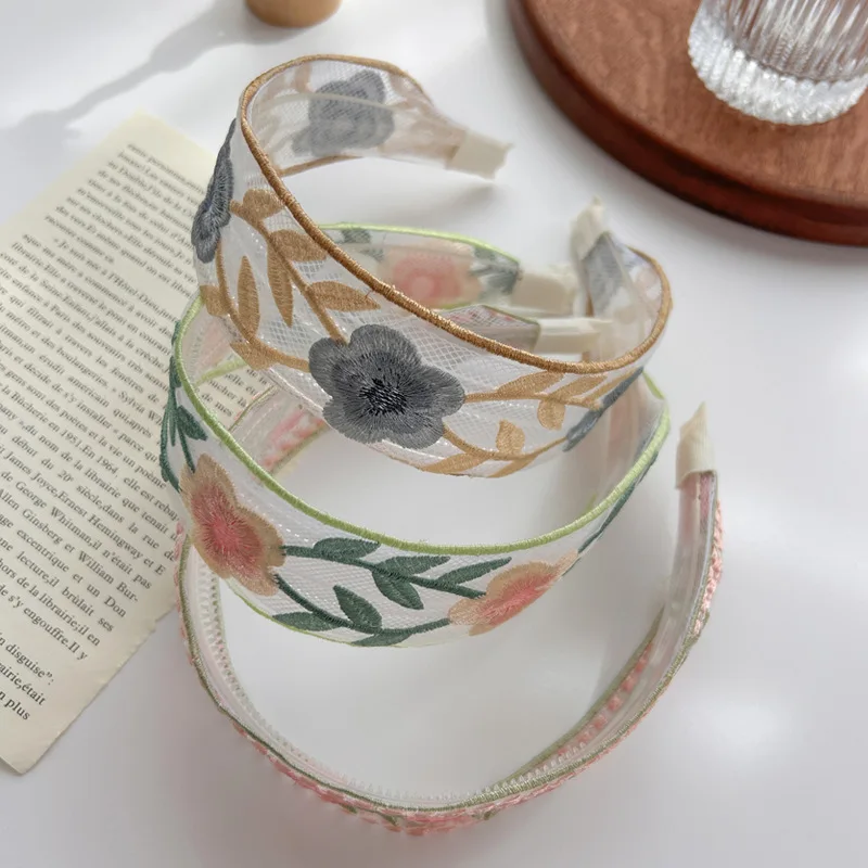 Élégant broderie fleur bandeau pour femmes doux en mousseline de soie cheveux décorer bandeau cheveux cerceau bande mode cheveux accessoires |