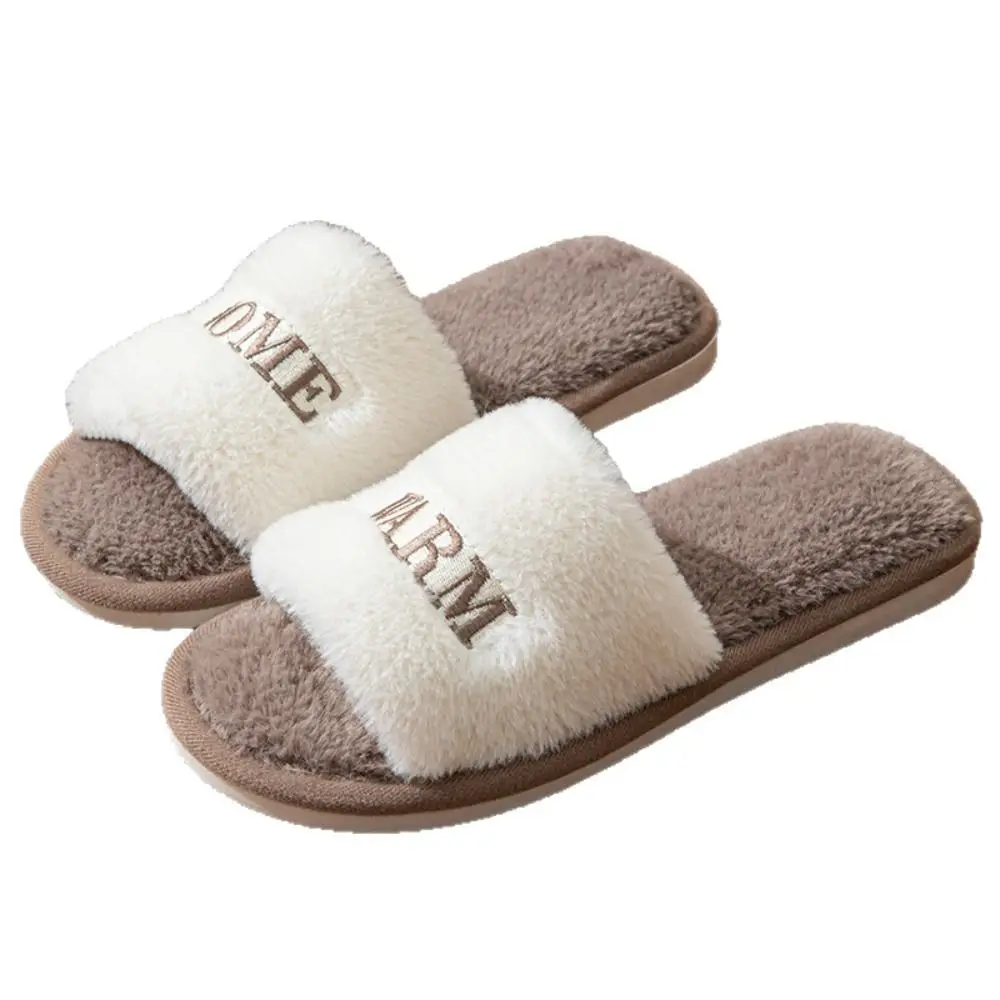 Élégant doux décontracté moelleux pantoufles chaud anti-dérapant femmes maison appartements semelle épaisse lettre maison coton chaussures étudiant |