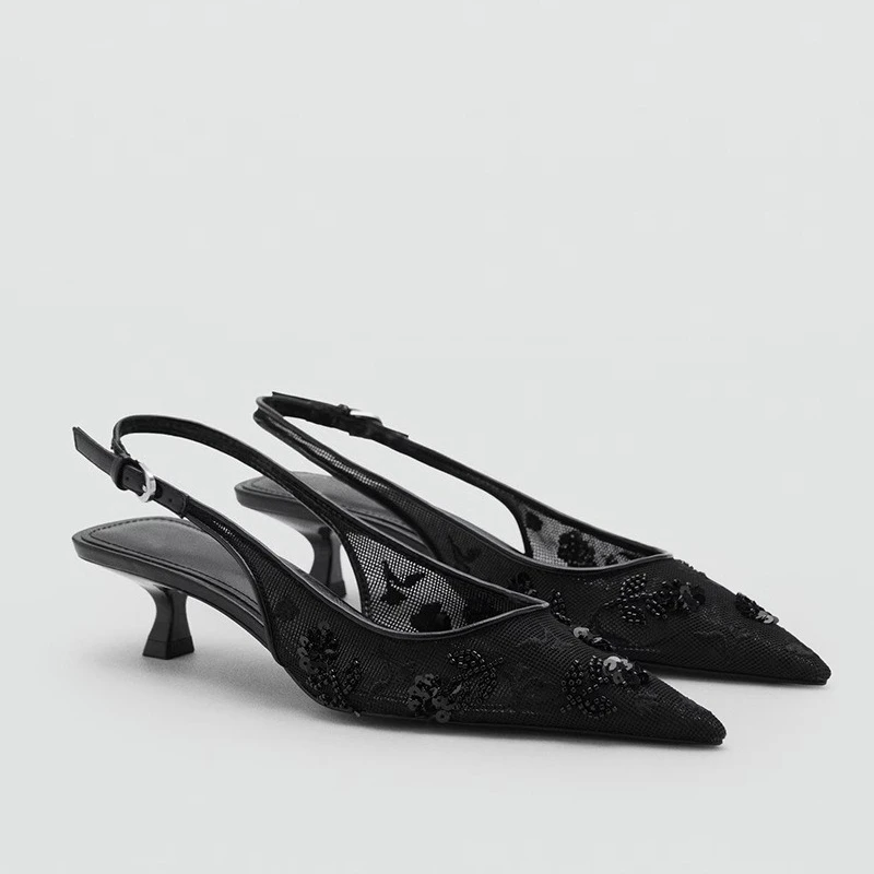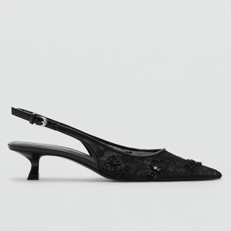 Numéro de Modèle: Elegant Mesh Embroider low heel Sandals