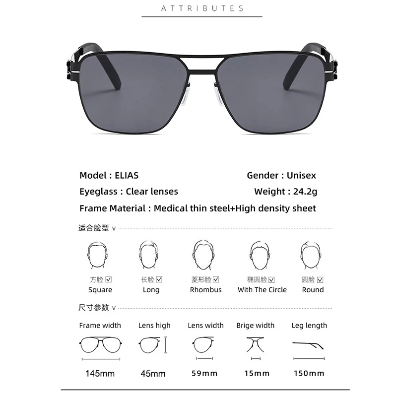 ELIAS-1 Allemagne Design Lunettes De Soleil Hommes Ultraléger En Acier Inoxydable Seattle Classique Lunettes De Soleil Femmes En Plein Air Conduite Lunettes De Soleil