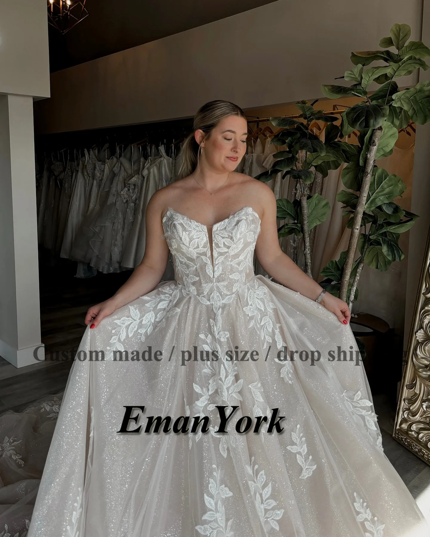 Keywords: EmanY Glitter Appliques Wedding Dresses for Woman Sleeveless A-Line Tulle Bridal Dress Vestidos De Casamento Customized
