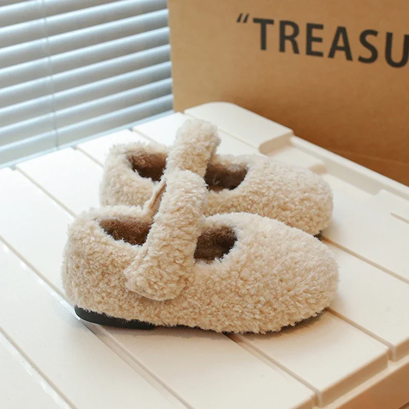 Enfant en bas âge enfants bout rond doux laine d'agneau ballerines bébé filles hiver chaud Teddy fourrure Mary Janes enfant marque Design chaussures moelleuses |