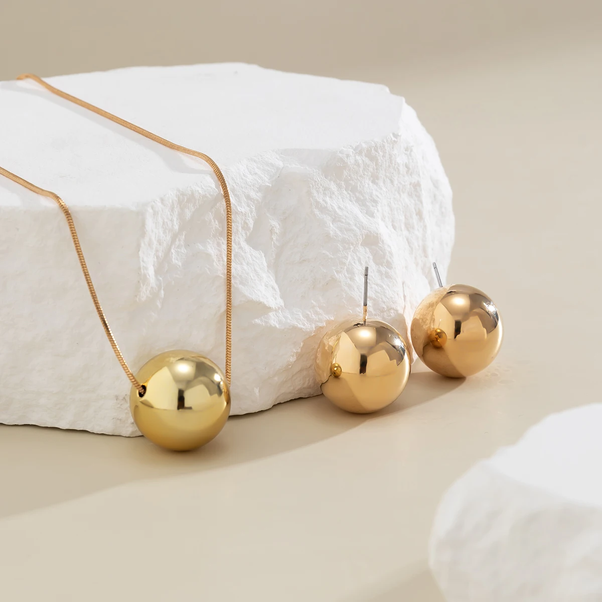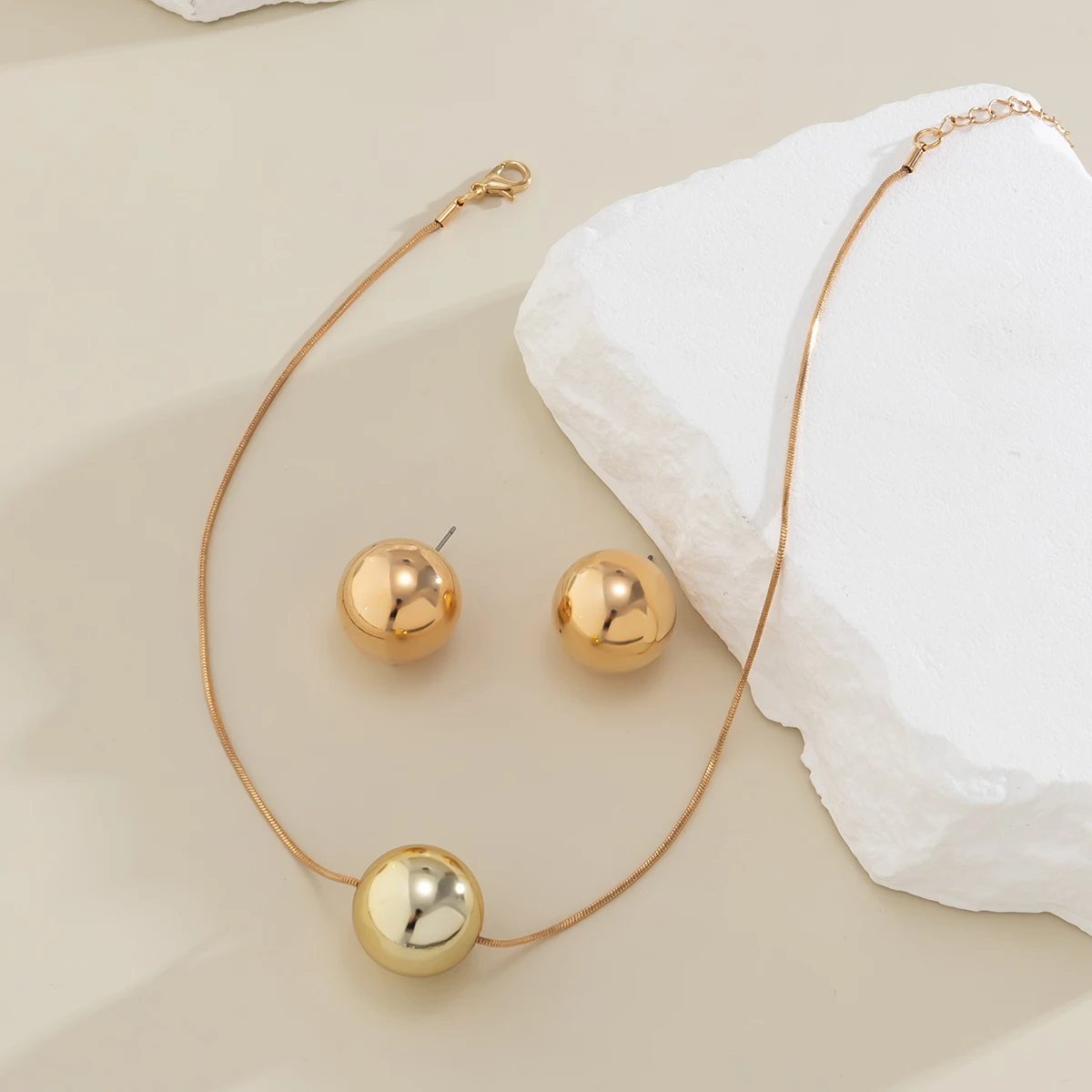 Numéro de Modèle: Elegant Simple Ball Pendant Necklace and Earrings Set for Women