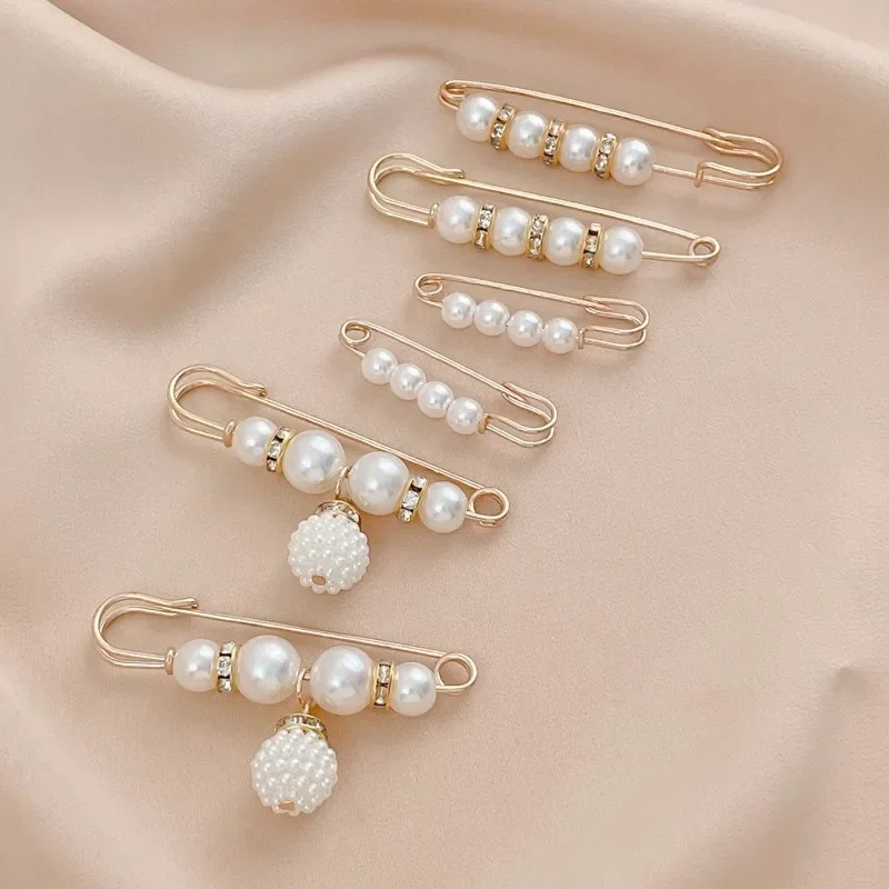 Ensemble de 6 pièces de pinces à épingles de taille en perles artificielles, pour pantalons, jupes, robe, chemises ajustées, broche de pull |