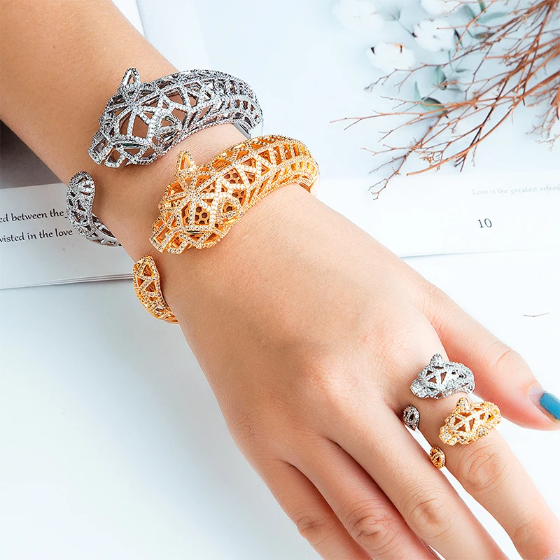 Ensemble de bagues de luxe pour femme, bijoux de mariée, en Zircon, Animal, léopard, nouvelle collection |