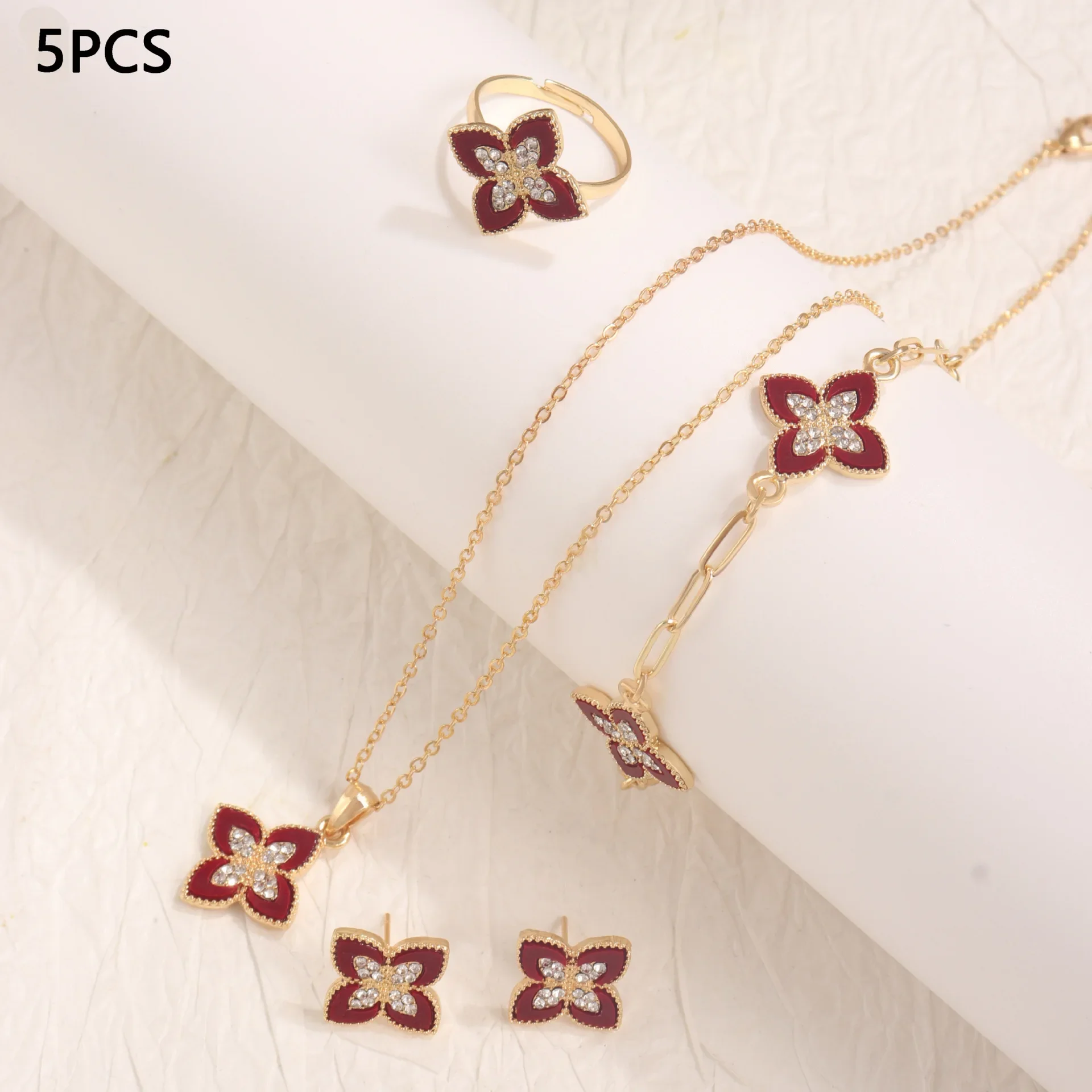 Ensemble de bijoux à quatre feuilles pour femmes, diamant intégré à la mode, collier élégant, bague, boucles d’oreilles, accessoire à main, Design haut de gamme