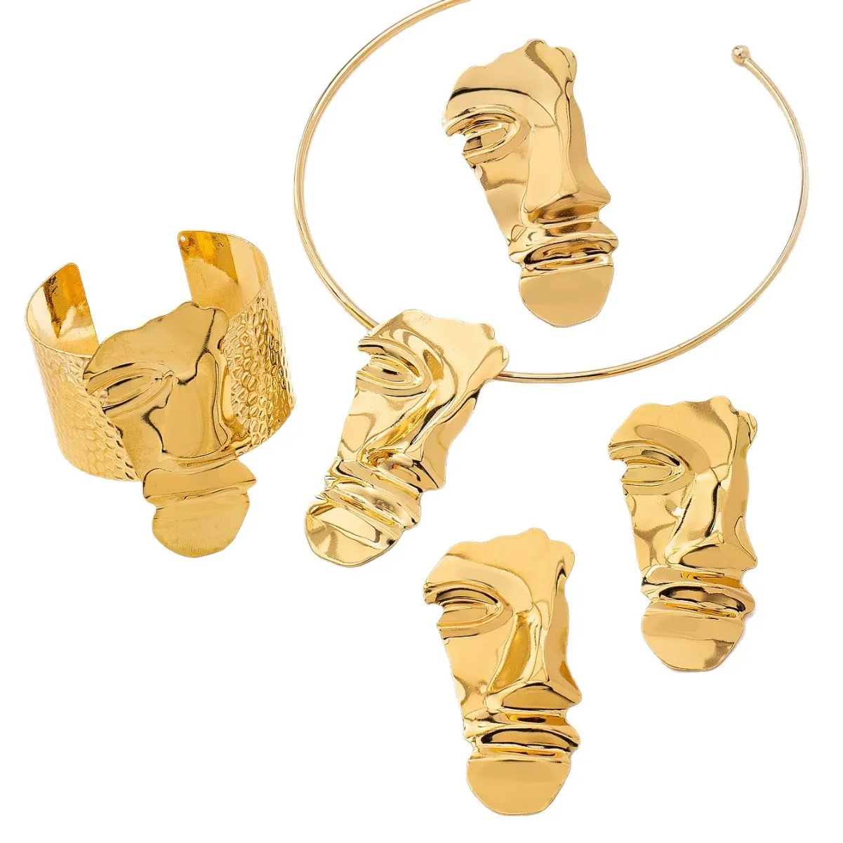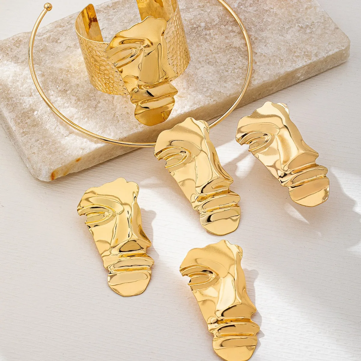 Ensemble de bijoux abstraits en or pour femmes, accessoire artistique en métal pour femmes, boucles d’oreilles tendance et cool, bracelet, bague pour fête et mariage…