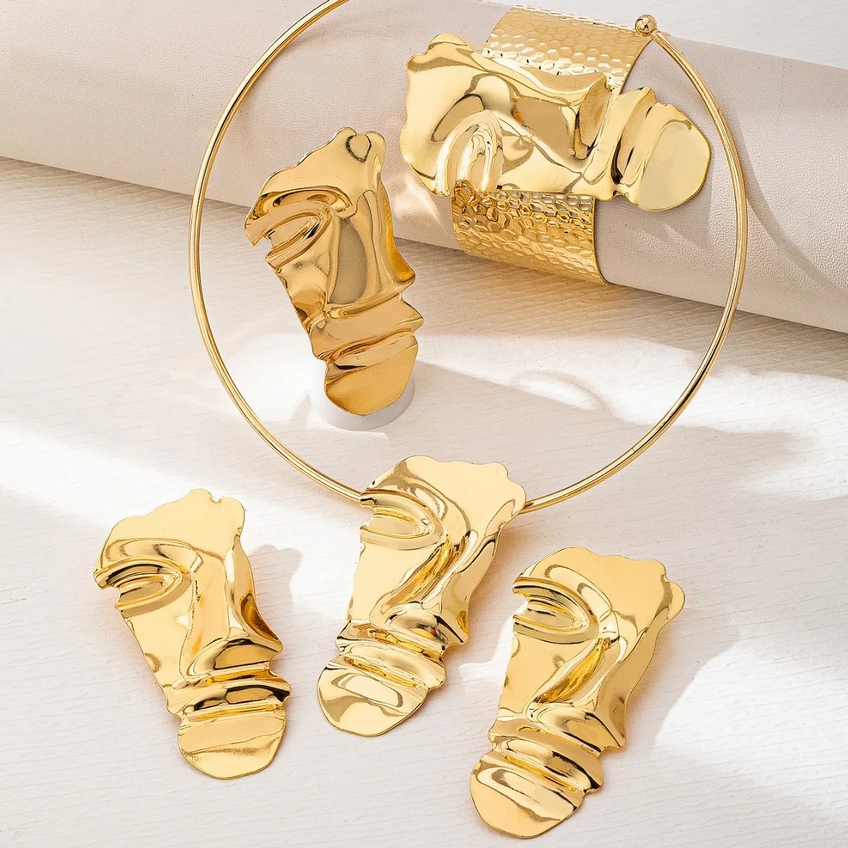 Ensemble de bijoux abstraits en or pour femmes, accessoire artistique en métal pour femmes, boucles d'oreilles tendance et cool, bracelet, bague pour fête et mariage... |