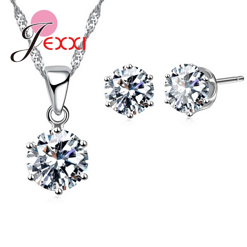 Ensemble de bijoux couleur argent 17 couleurs, boucles d'oreilles + collier Diomand CZ de fiançailles classique, cadeau pour femmes |