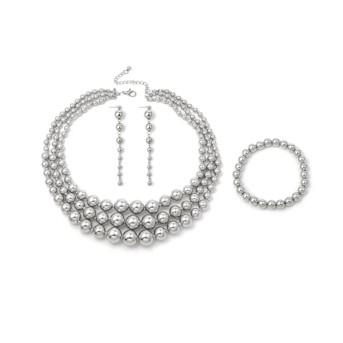 Ensemble de bijoux de luxe en perles d’or : collier de déclaration, boucles d’oreilles pendantes et bracelet pour femmes élégantes