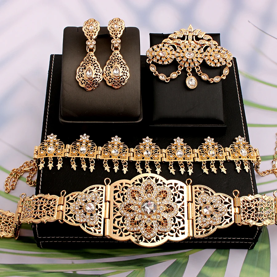 Ensemble de Bijoux de Luxe Plaqué Or pour Patients Musulmans aniques, Caftan Marocain, Environnement de Mariage, Accessoire JOBride |