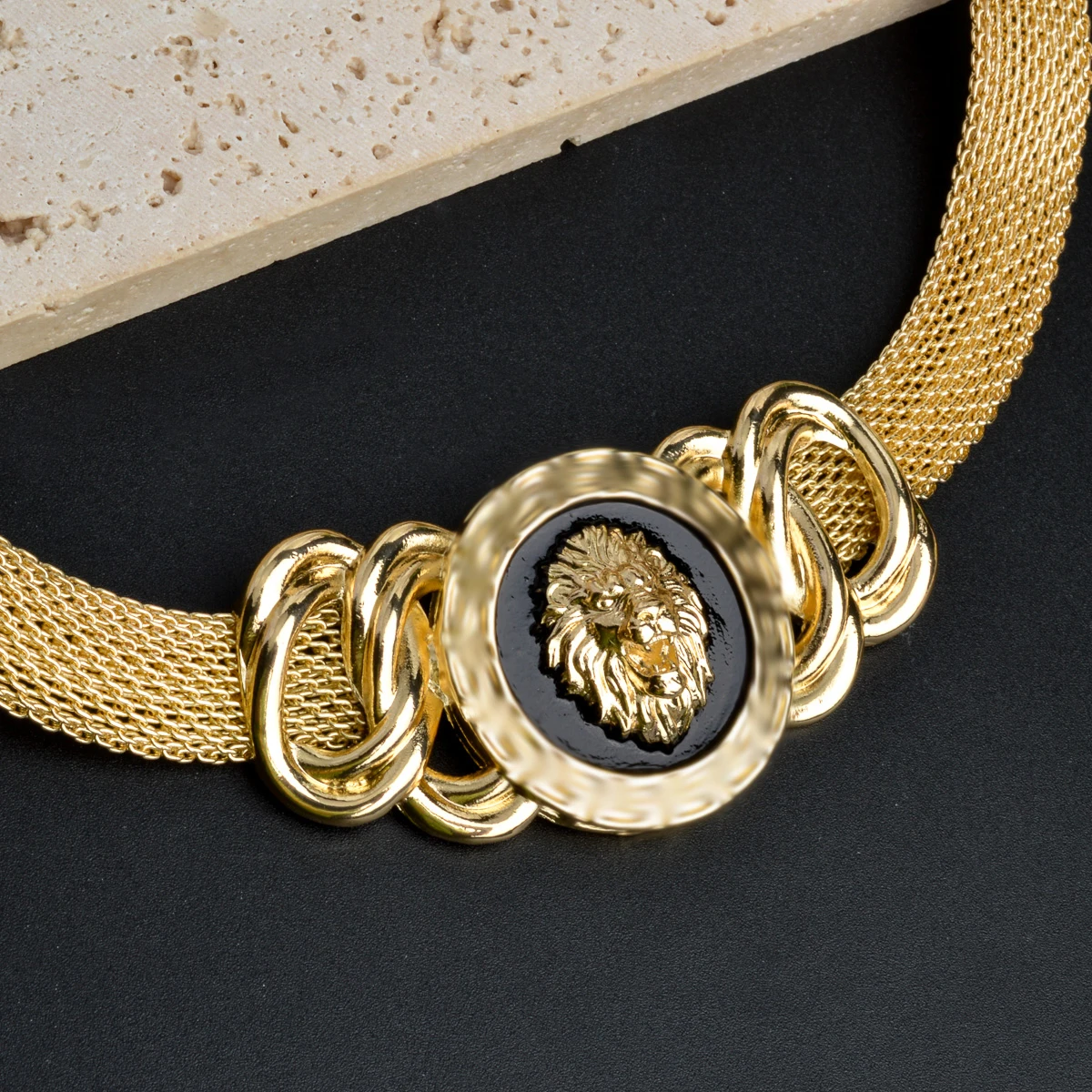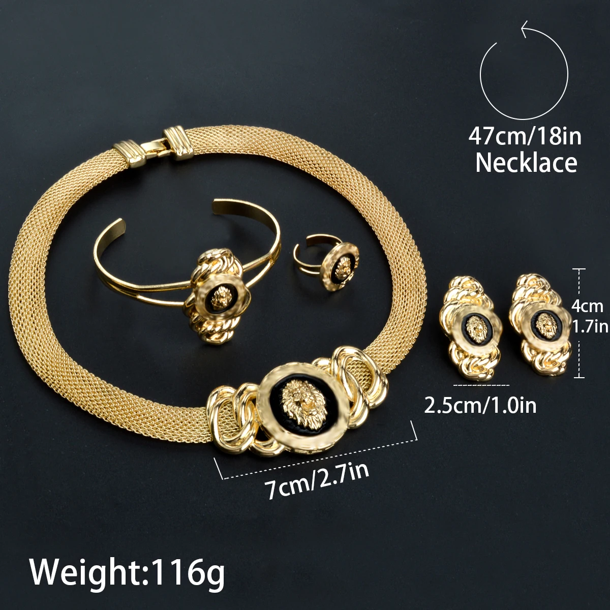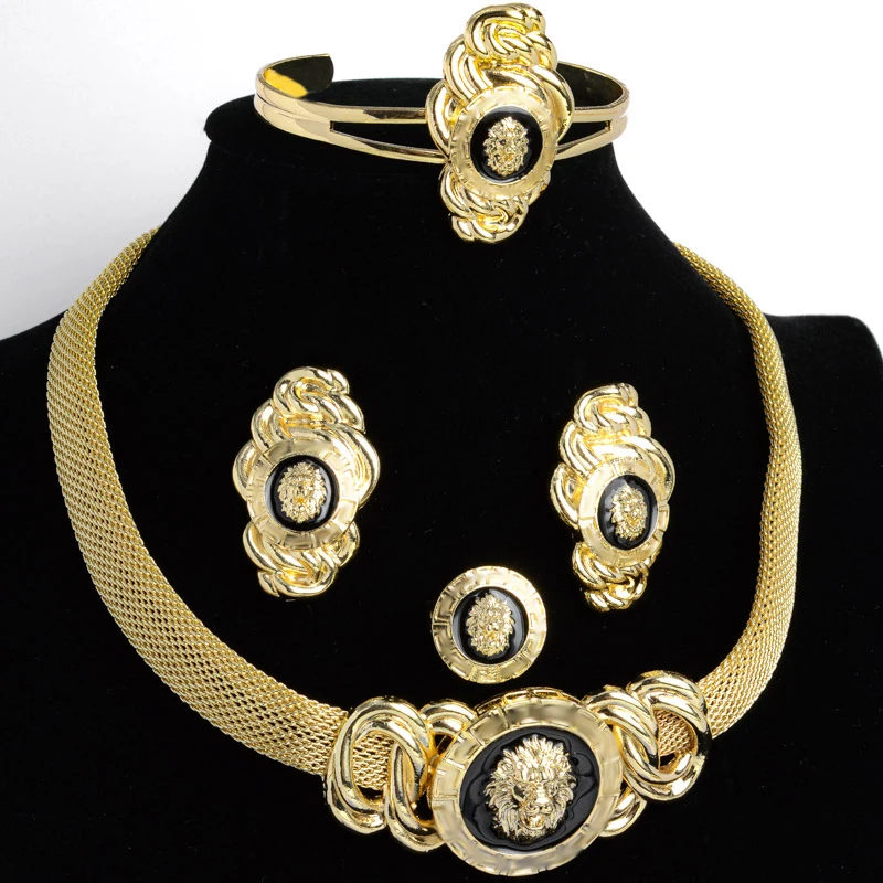 Ensemble de bijoux de luxe pour femmes, plaqué or 18 carats, collier Lion, Bracelet, bague, boucles d'oreilles, accessoires de bijoux de mariage |