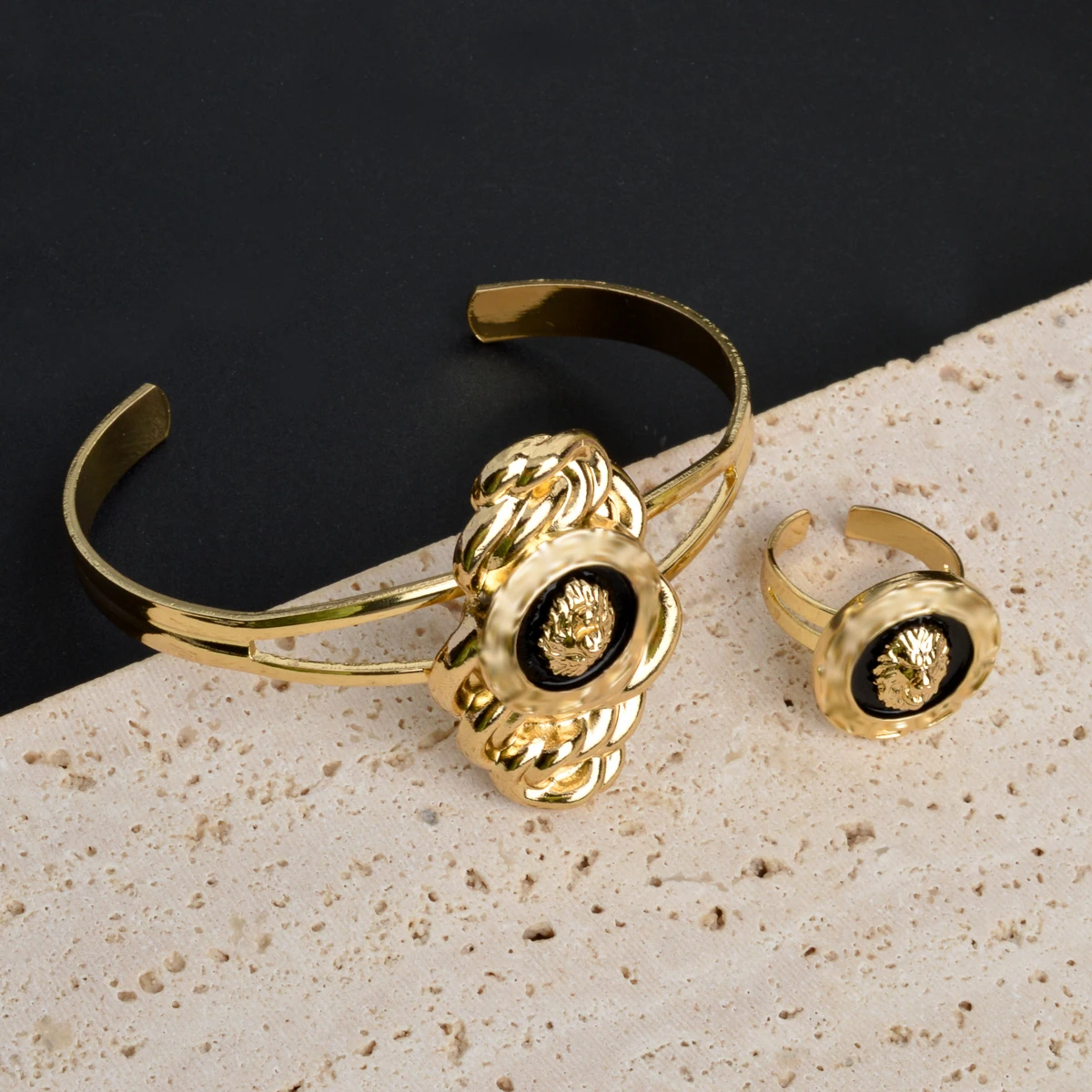 Ensemble de bijoux de luxe pour femmes, plaqué or 18 carats, collier Lion, Bracelet, bague, boucles d’oreilles, accessoires de bijoux de mariage
