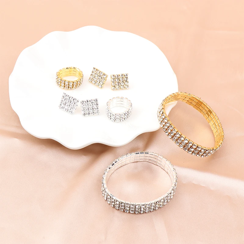 Ensemble de bijoux de mariée, collier, Bracelets, bague, boucles d'oreilles, Super magnifique, luxe, brillant, à la mode, cadeau de fête, 4 pièces/ensemble |