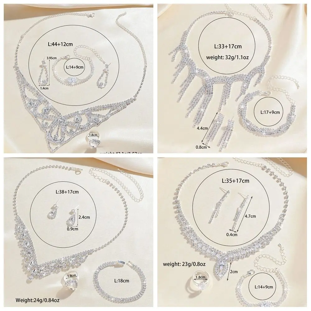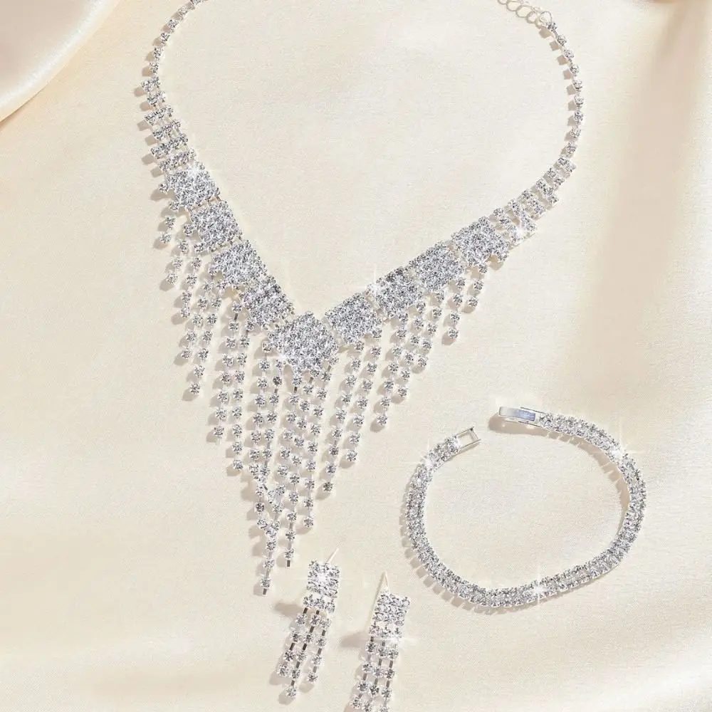 Ensemble de bijoux de mariée de luxe à la mode, collier et boucles d'oreilles en Zircon élégant, Bracelet exquis, collier en strass pour filles |
