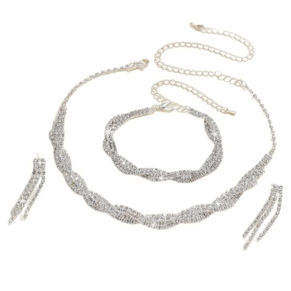 "Cet ensemble de bijoux de mariage est tout simplement magnifique ! Les pièces sont d'une grande élégance et étincellent superbement sous la lumière. J'ai particulièrement apprécié la finesse du travail et la solidité des fermoirs. Certes, le collier était légèrement trop grand pour mon cou, mais j'ai pu le réajuster facilement. Dans l'ensemble, c'est un accessoire de mariage de très haute qualité que je recommande chaudement à toutes les futures mariées !"