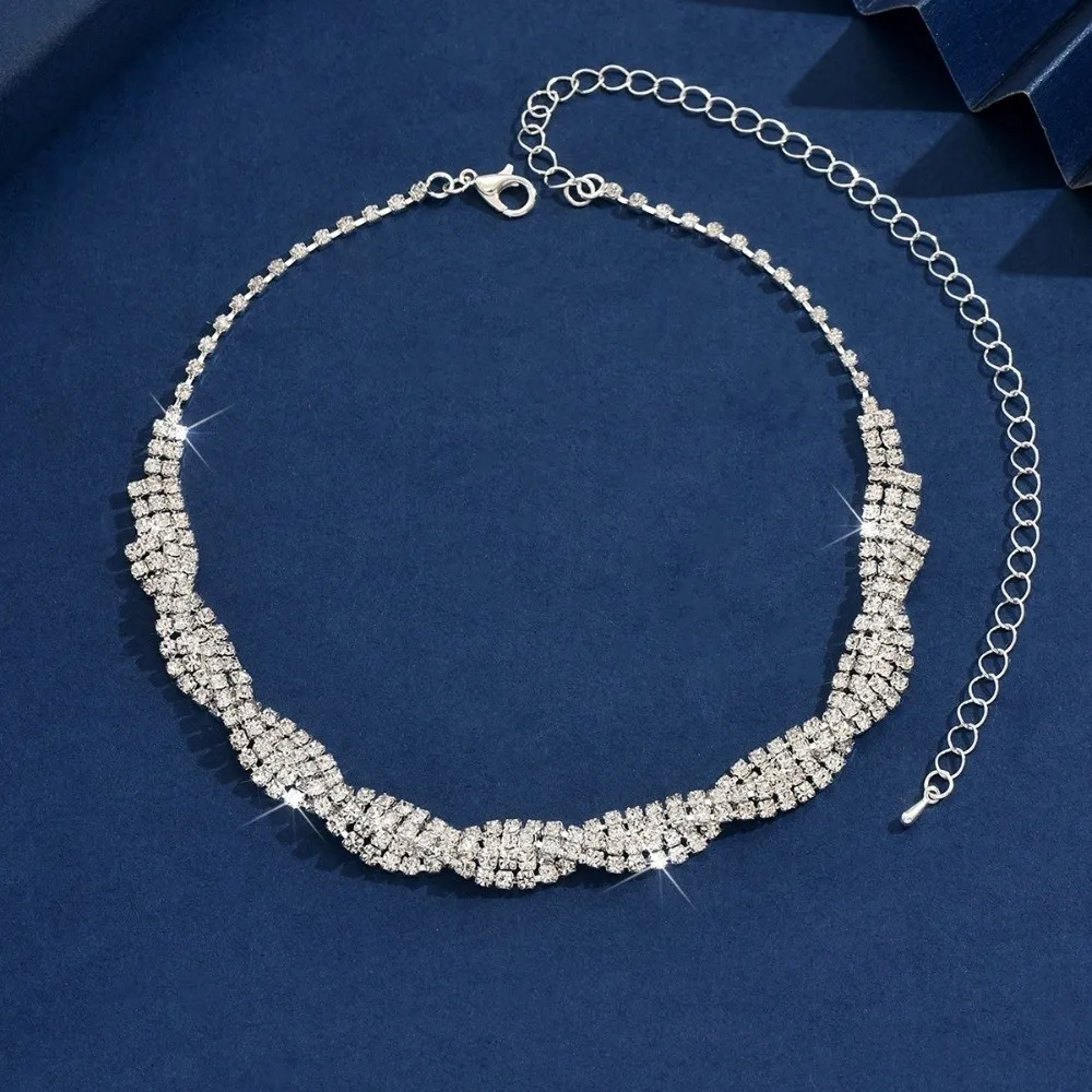 Ensemble de bijoux de mariée élégants à la mode, collier et boucles d'oreilles de luxe scintillants, accessoires de mariage exquis en alliage, Occasions de bal |
