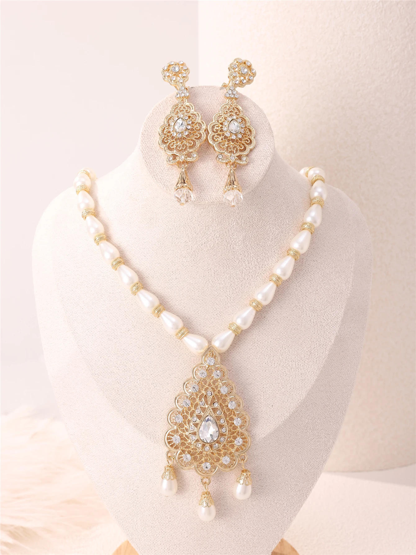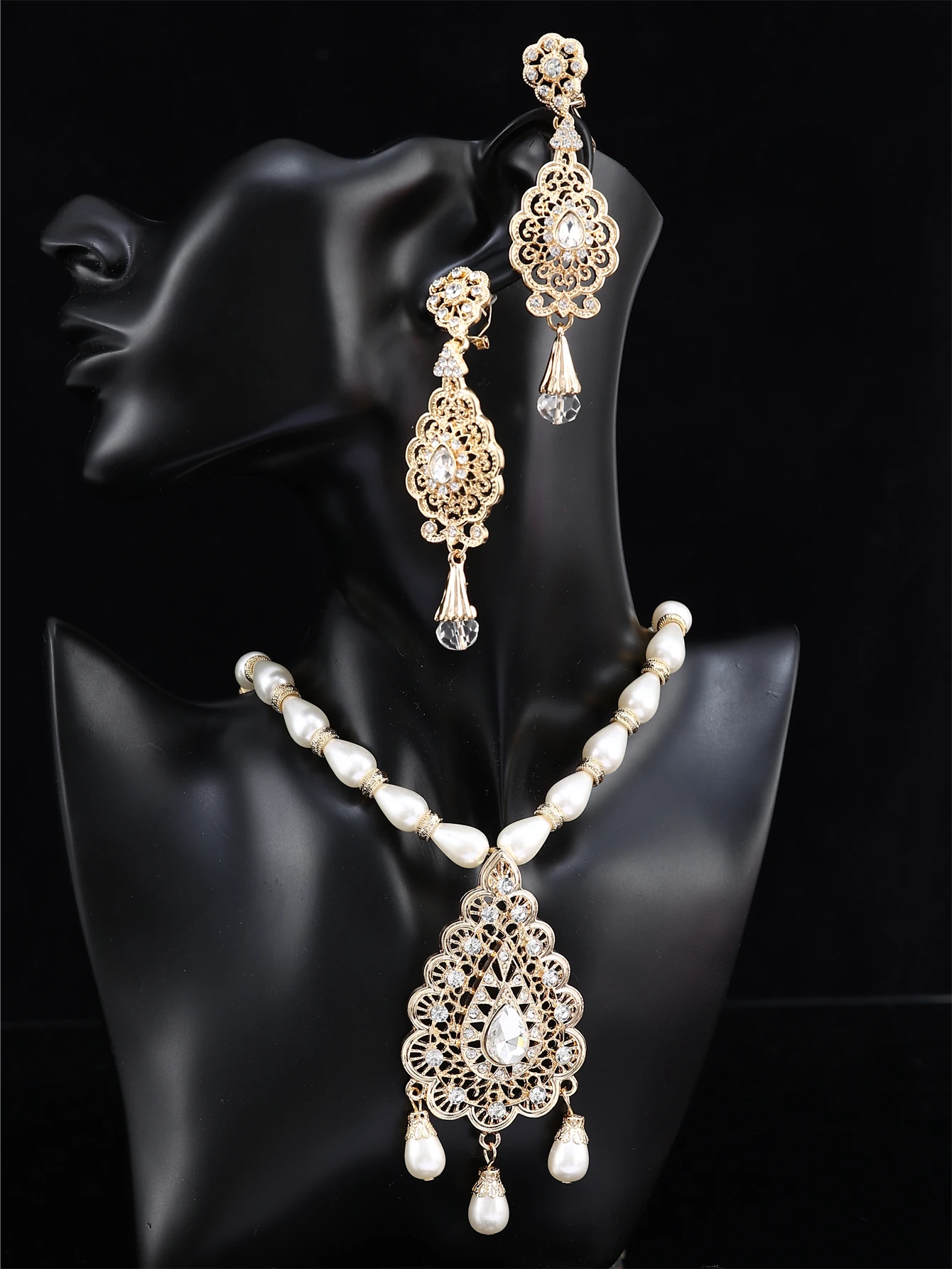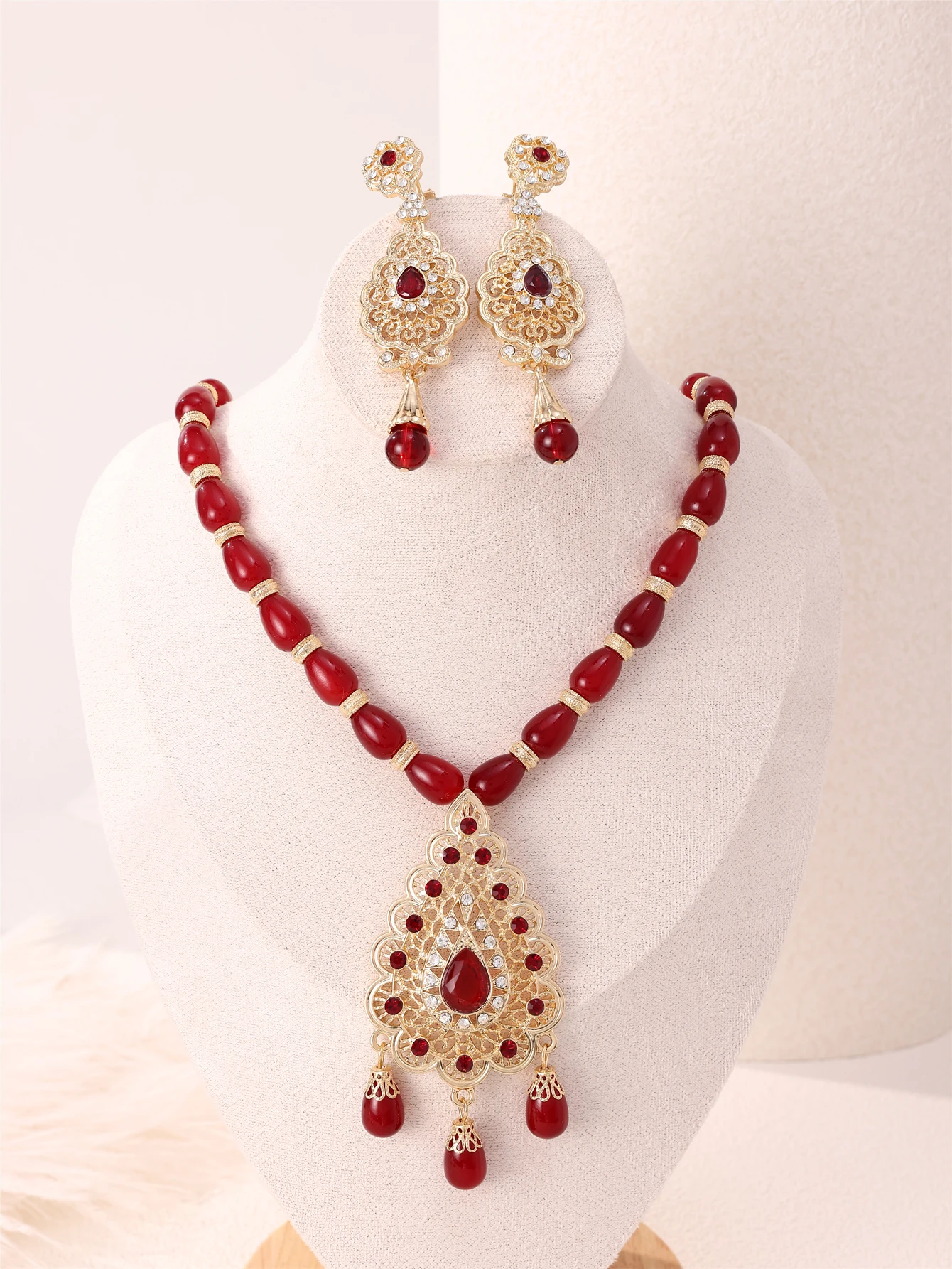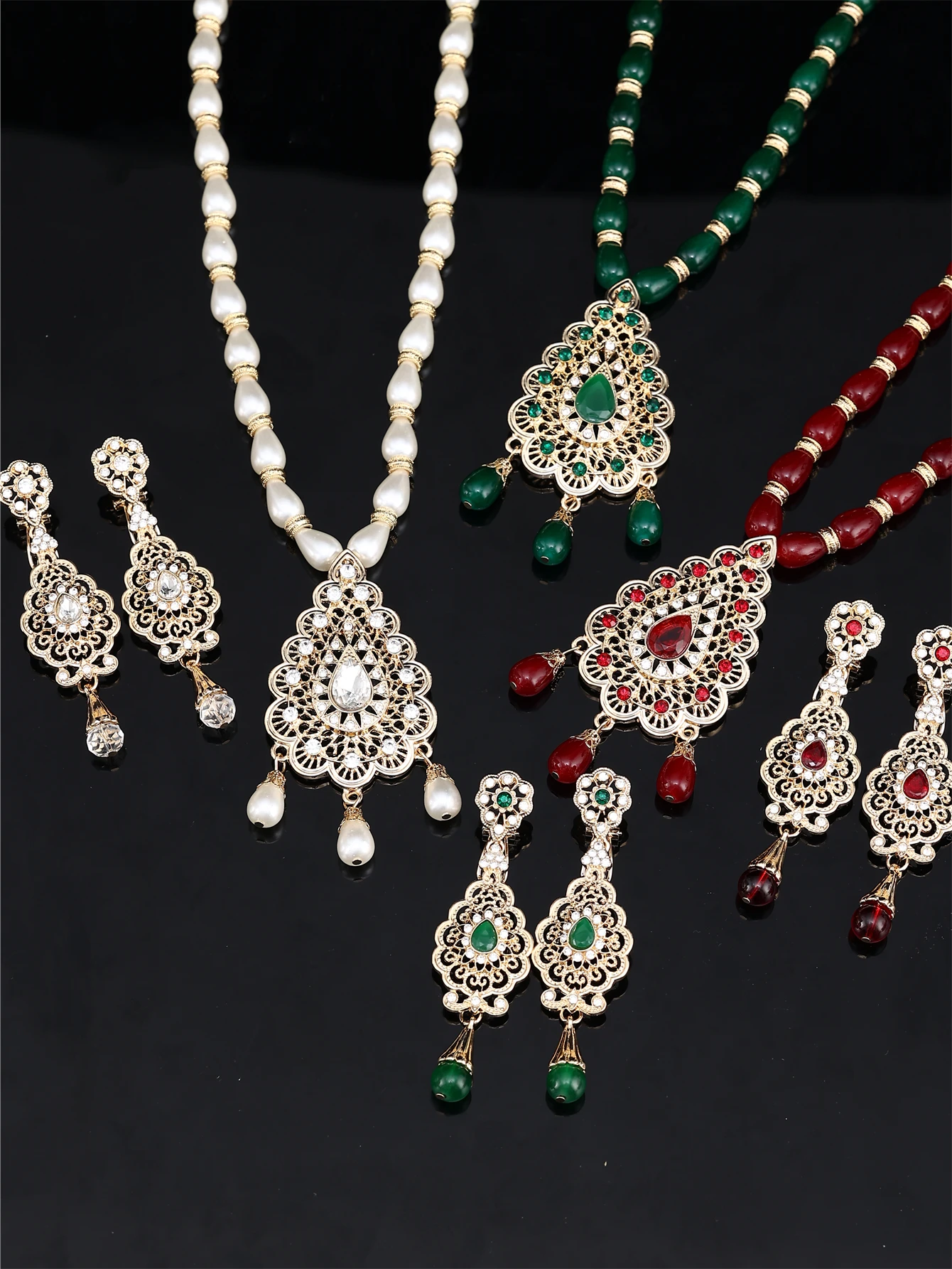 Ensemble de bijoux de mariée faits à la main, perles rouges et vertes, robe arabe pour femmes, collier de perles d'imitation, boucles d'oreilles, accessoires |