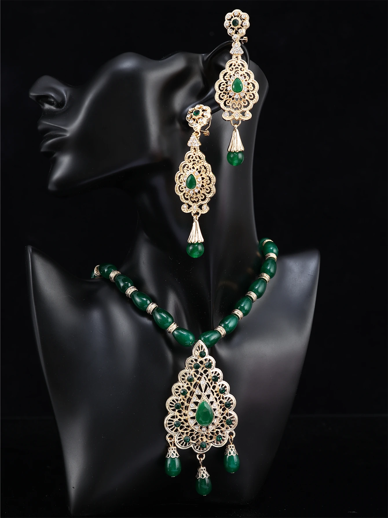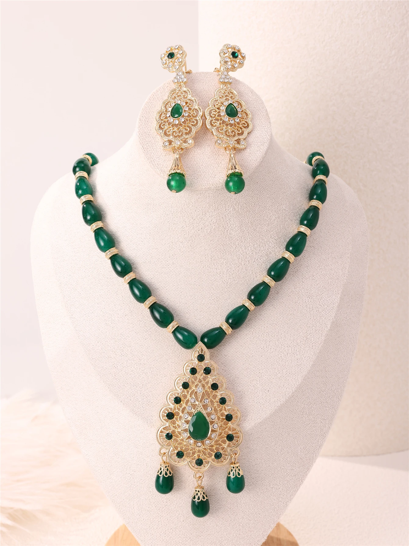 Ensemble de bijoux de mariée faits à la main, perles rouges et vertes, robe arabe pour femmes, collier de perles d’imitation, boucles d’oreilles, accessoires