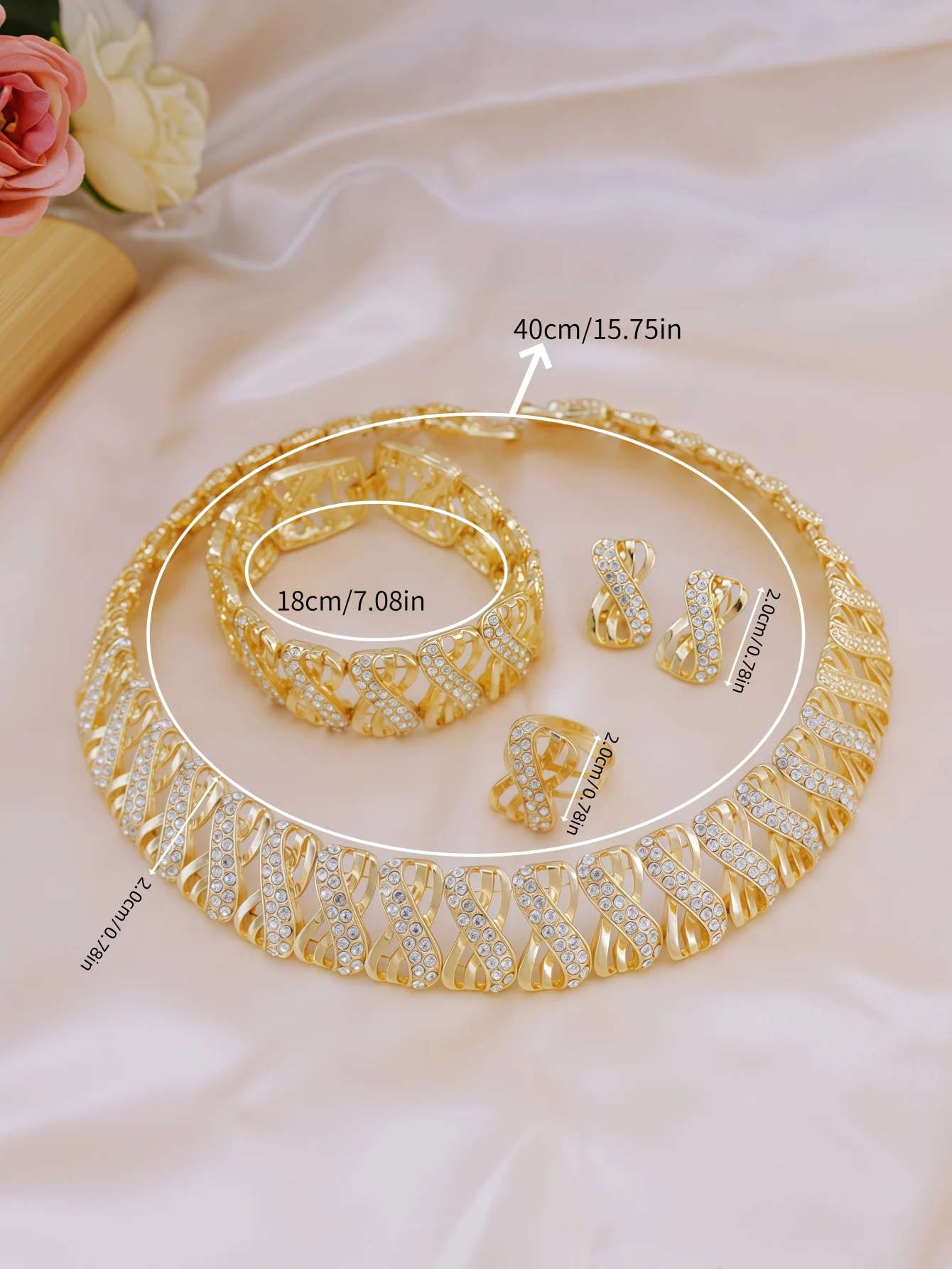 Ensemble de bijoux de mariée traditionnels 5 pièces, plaqué or 18 carats, nœud élégant, design infini avec strass pour combler votre tenue quotidienne |